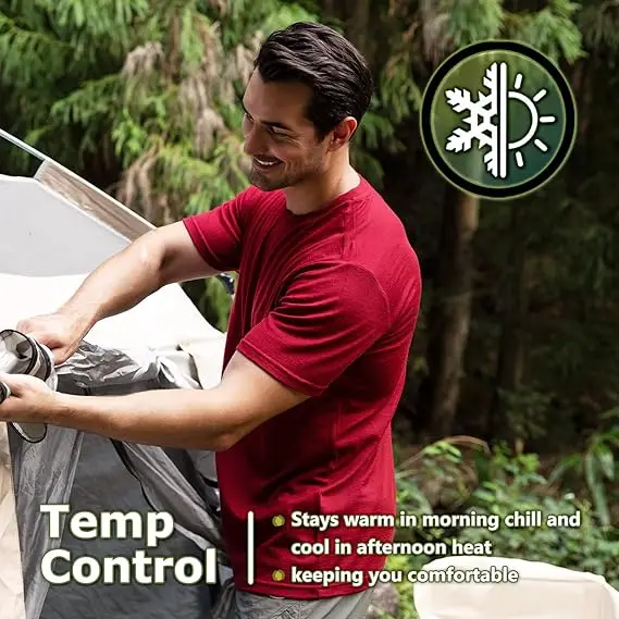 4.Easy Care: Washer safe. For longer lasting wear, hand wash and lay flat to air dry. Lightweight mens wool t shirt naturally regulates body temperature to keep you comfortable all year round.