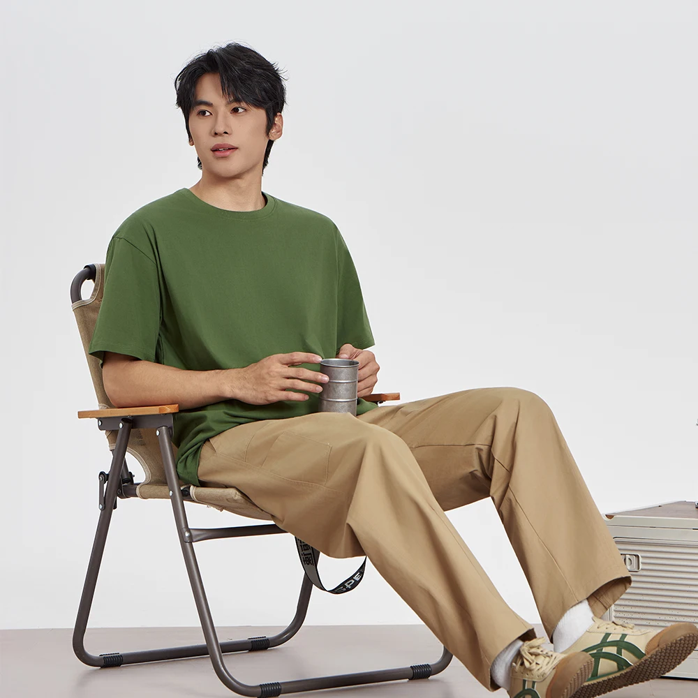 I’m thrilled with this T-shirt. Size L fits me perfectly. In the photo, I’m wearing a T-shirt underneath. I used the size chart as a guide. I usually wear XL or even 2XL, but the quality is amazing. It’s sewn perfectly without any extra threads. The color is green, just like in the picture.