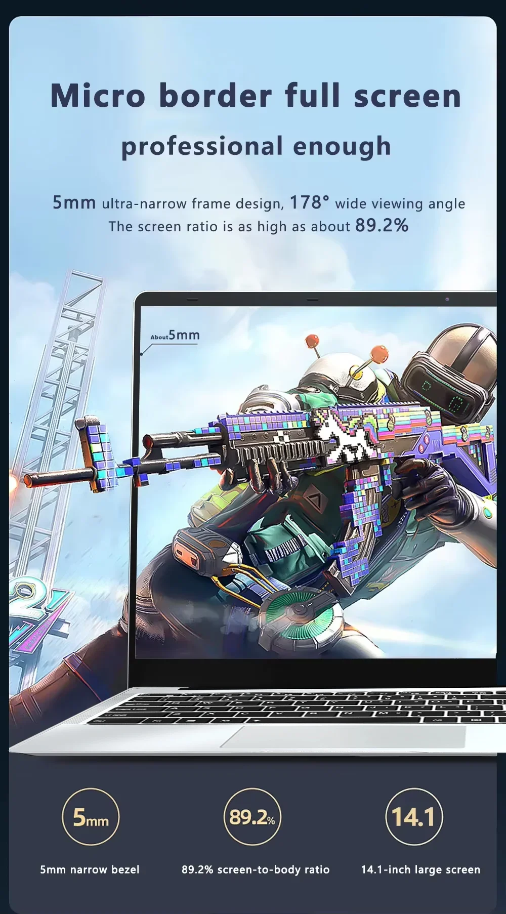 1) 14.1-inch FHD 1920*1080P IPS screen The 14.1-inch FHD screen provides a wider view and is still clearly visible even in strong outdoor lighting. In addition, night mode and color adjustment will help reduce eye strain.