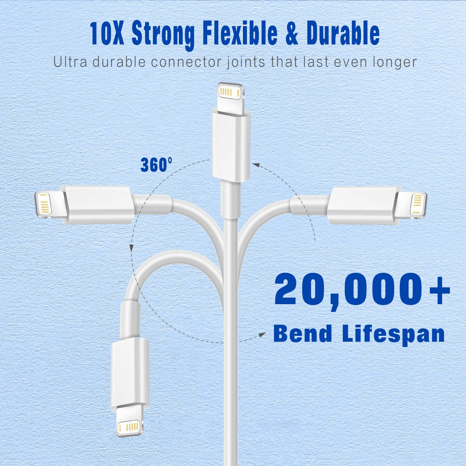 [Super Durability and Flexibility]:The iphone charging cables are made of top-rated material and coated with premium TPE, which last 4X longer than other iphone charger cord and proven to withstand over 25,000 bends in strict laboratory tests.