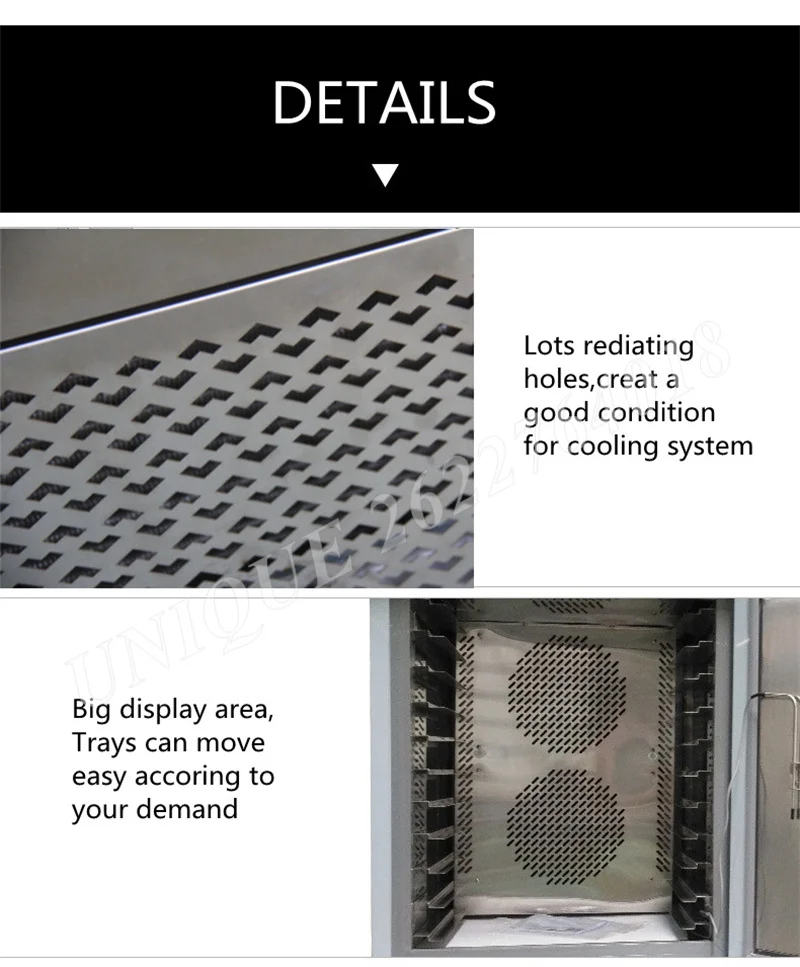 The effect of blast freezer is fast, cryogenic quick-freezing. Generally from about 25℃ to -25℃ in about 20 minutes. The temperature of food can be reduced to -6℃ to -10℃ in 20 minutes.