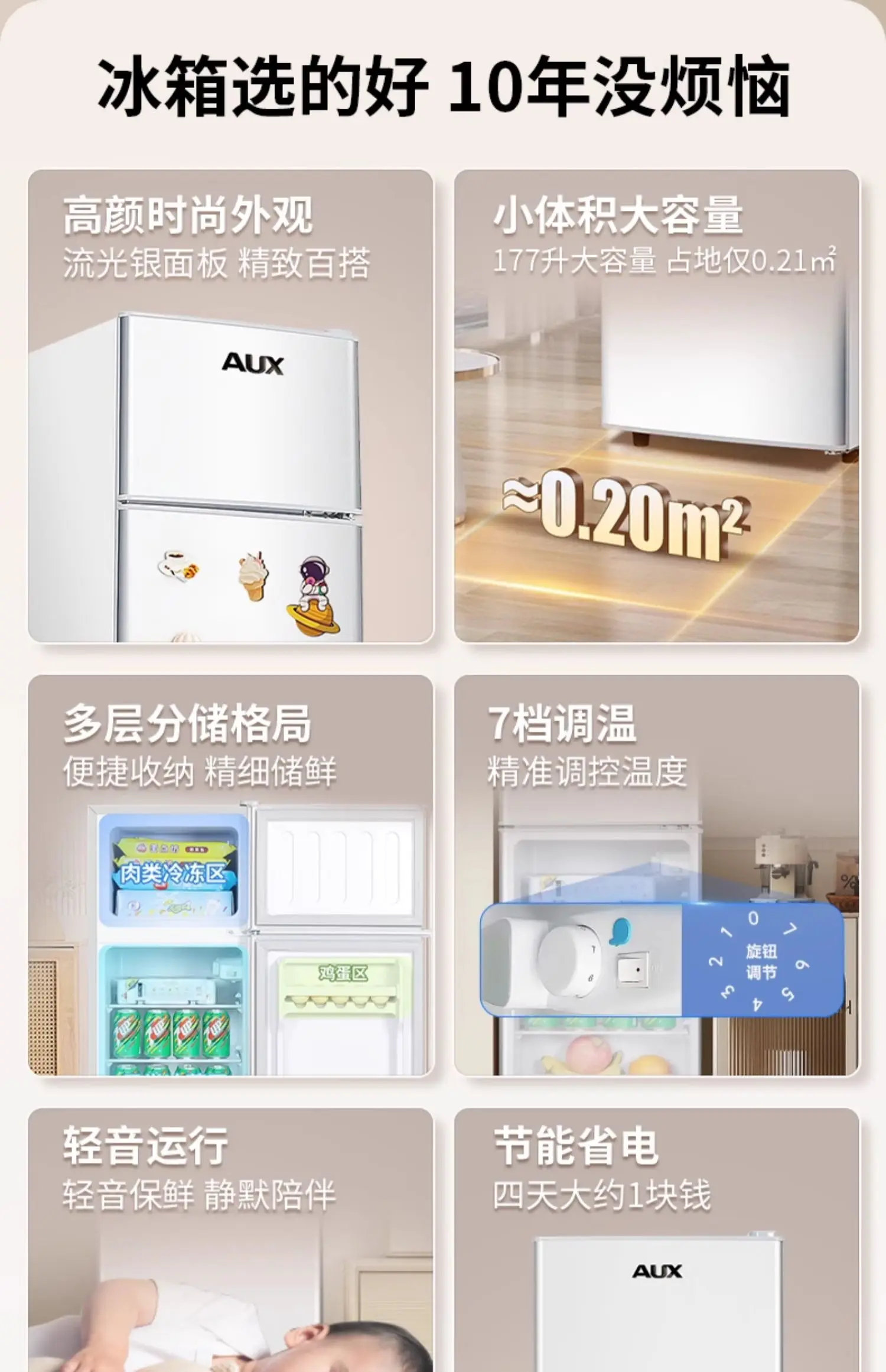 ABB Oaks Small Refrigerator Small Double Door Office Mini Two-person Dormitory Rental Room Refrigerator