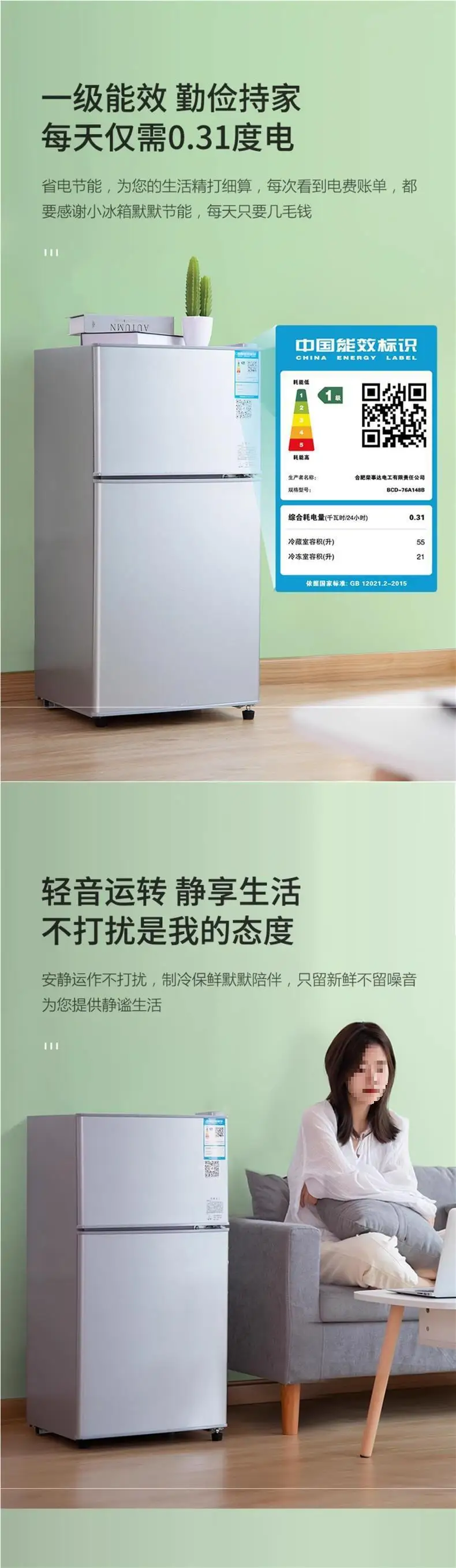 BCD-58 Double Doors Top Freeze Refrigerators House Hold Mini Fridge