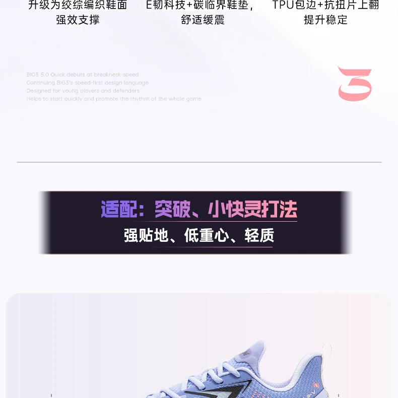 BIG3 5.0 Quick 361 Basketball Shoes Summer New Five Generation Professional Sports Shoes Practical Men’s Shoes