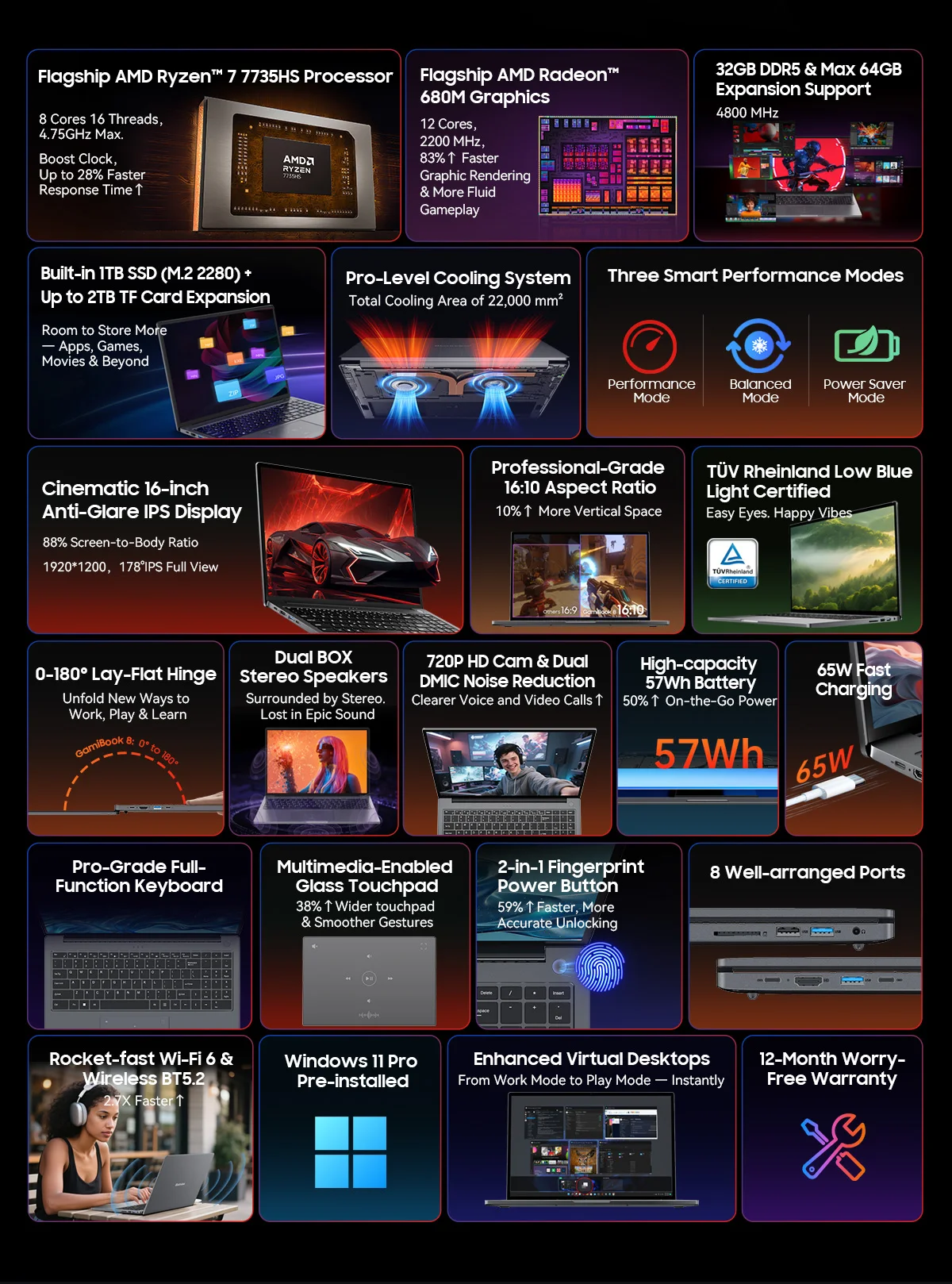 CPU:8-Core AMD Ryzen™ 7 7735HS Processor