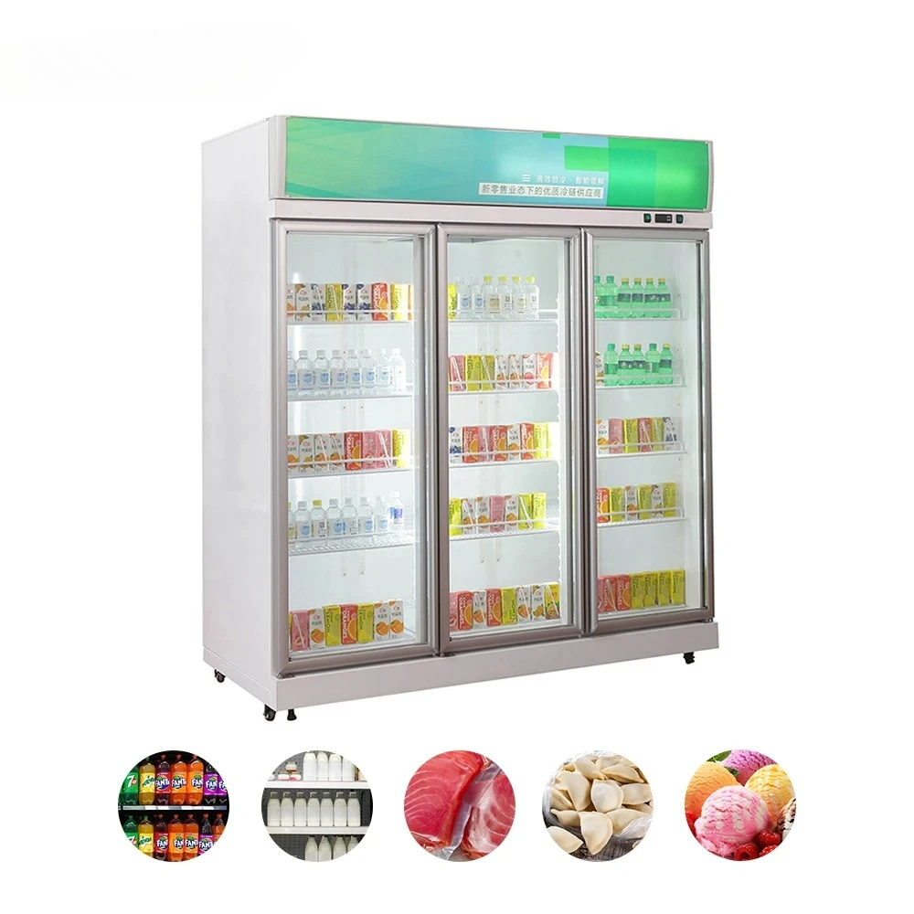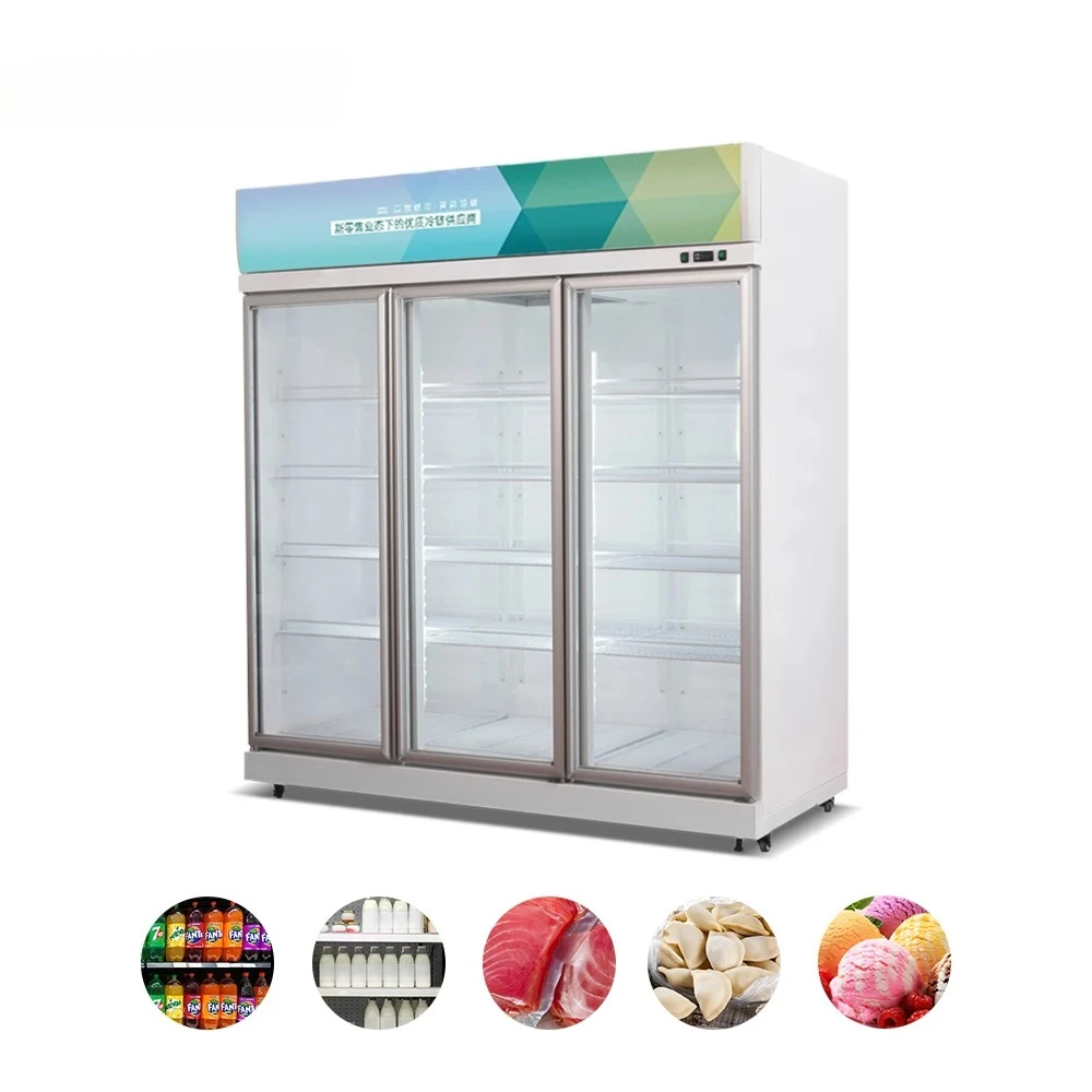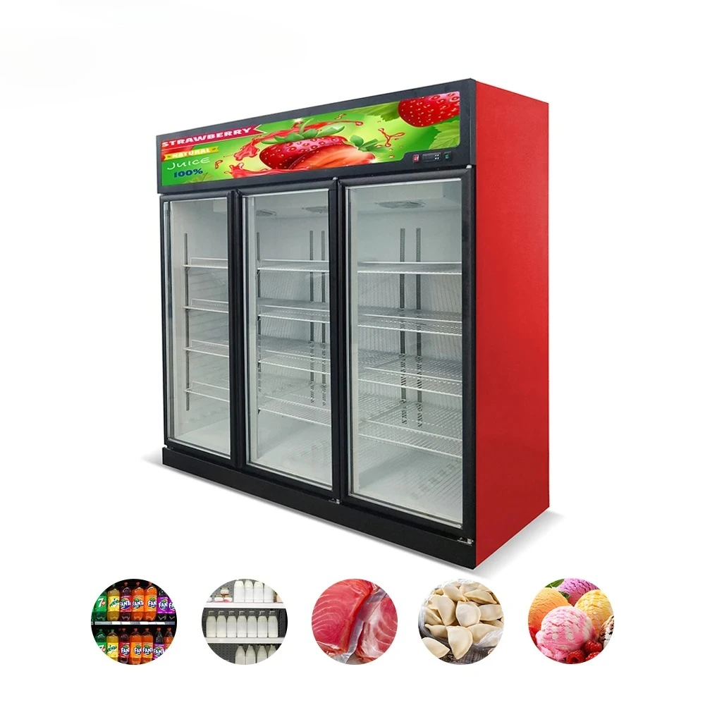 Commercial Supermarket Display Refrigerators Upright Beverage Cooler Freezer Upright Glass Door Freezer