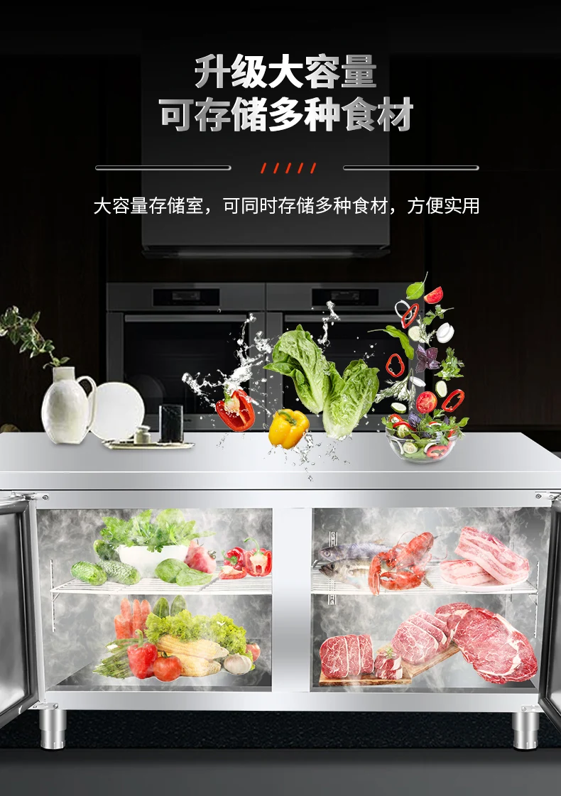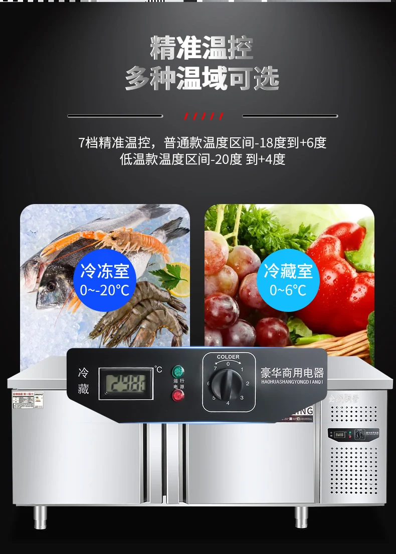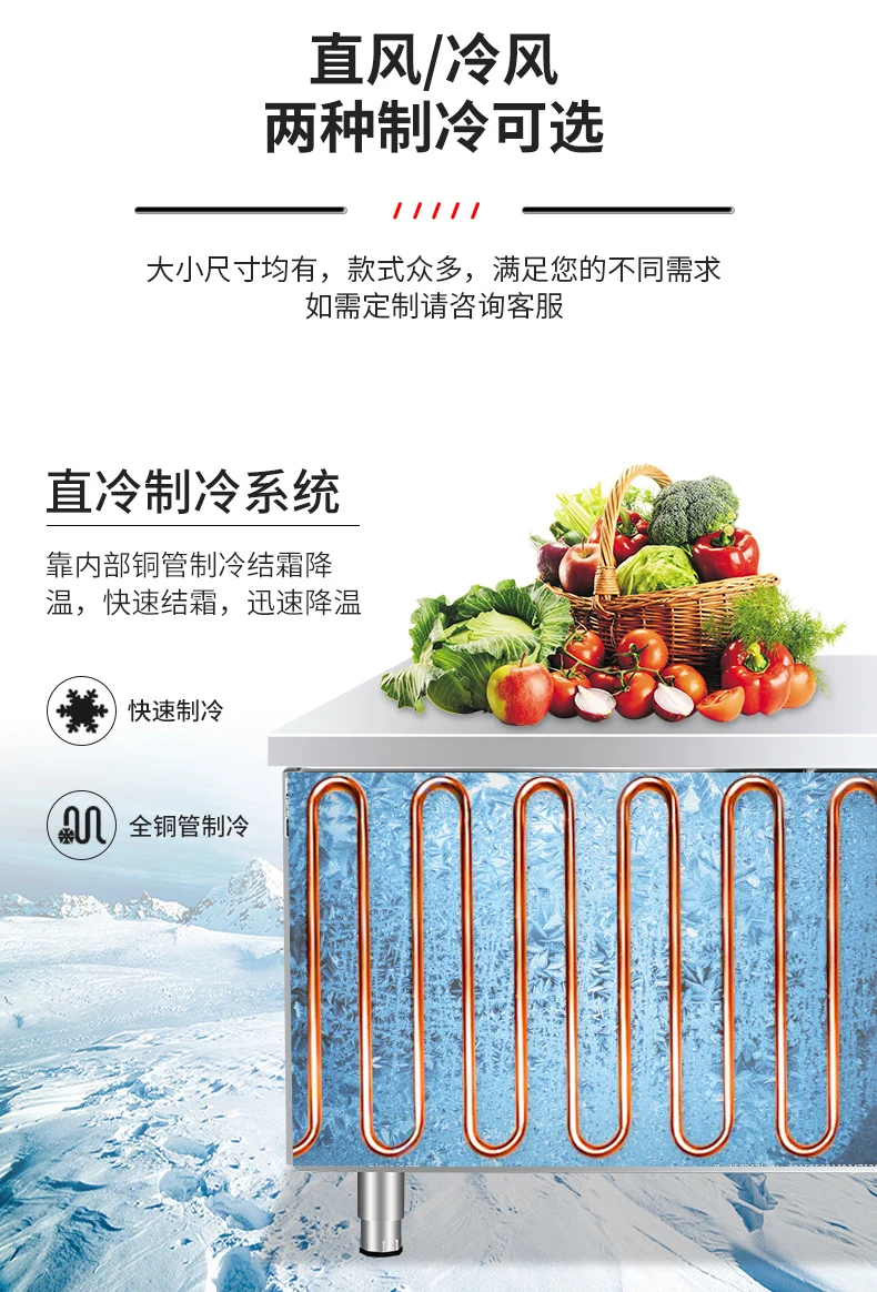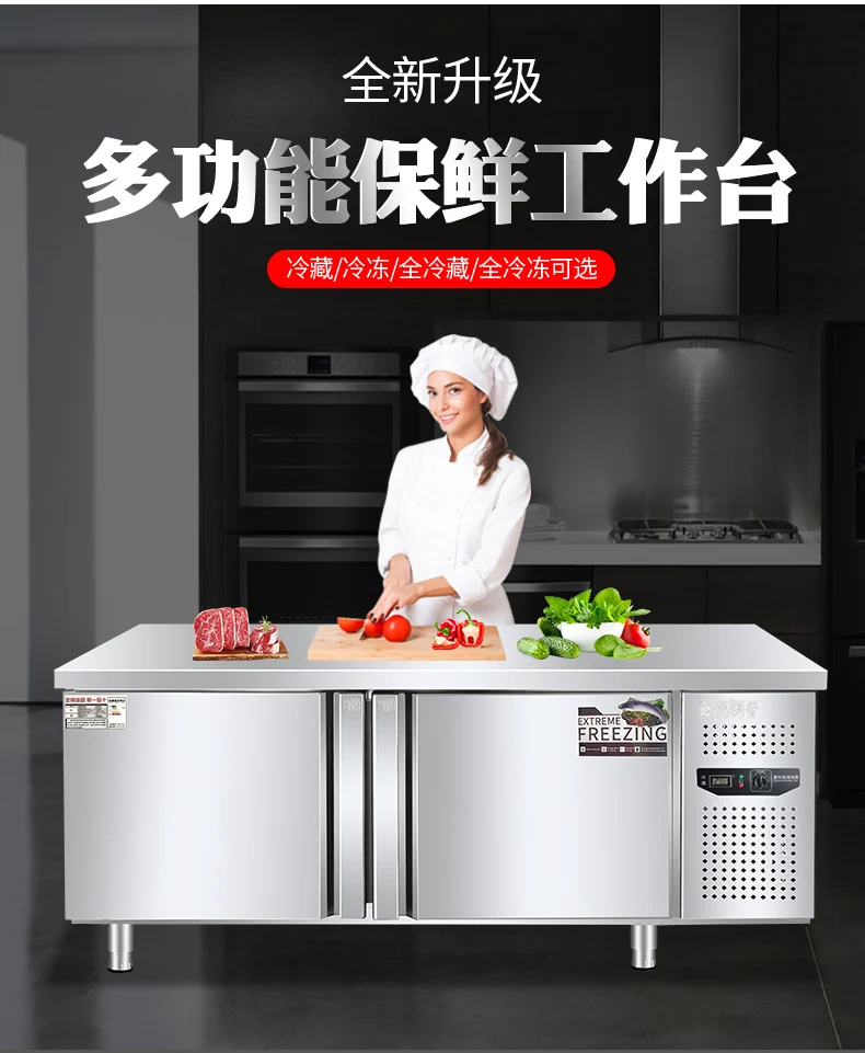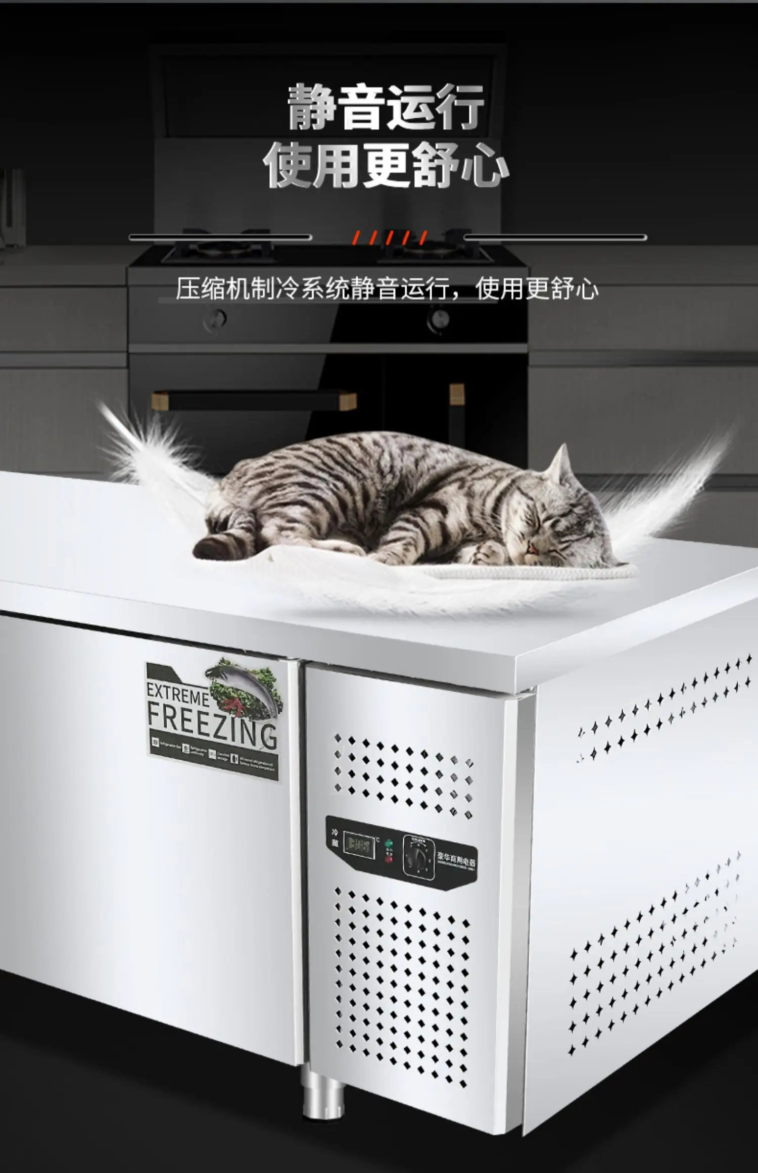 cQ commercial refrigerated fresh-keeping workbench freezer stainless steel flat-cooled console milk tea shop refrigerator