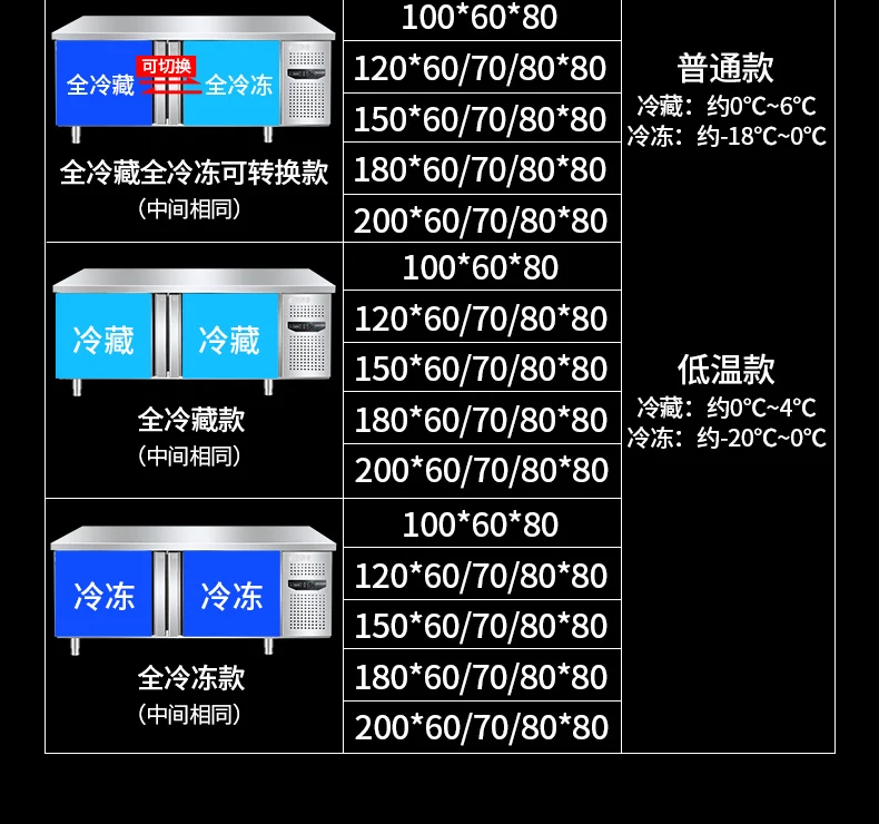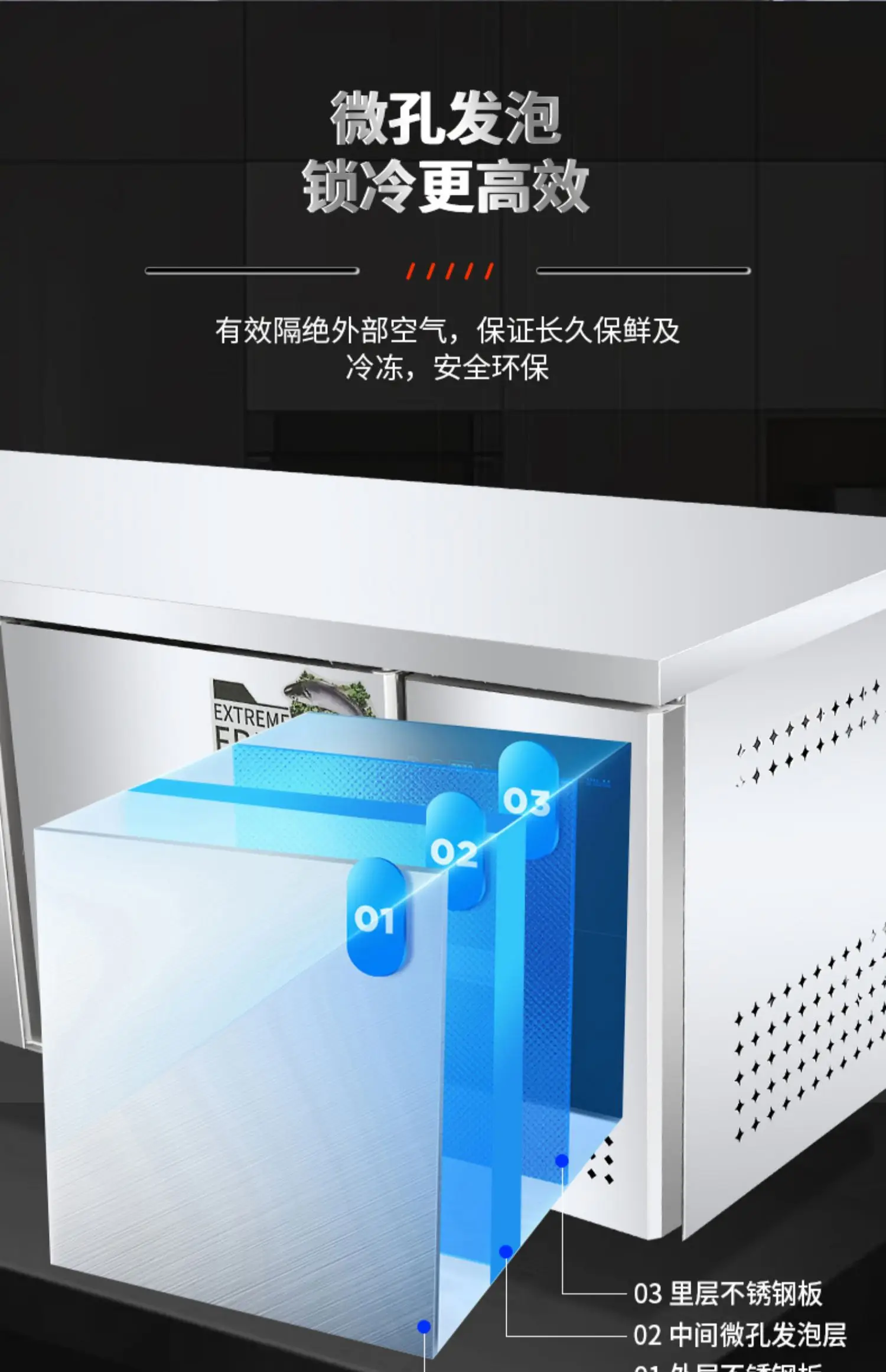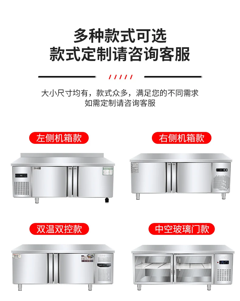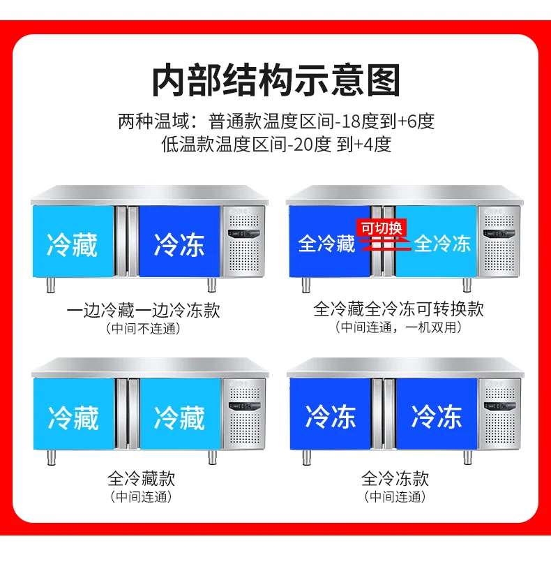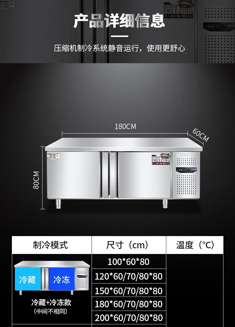 cQ commercial refrigerated fresh-keeping workbench freezer stainless steel flat-cooled console milk tea shop refrigerator