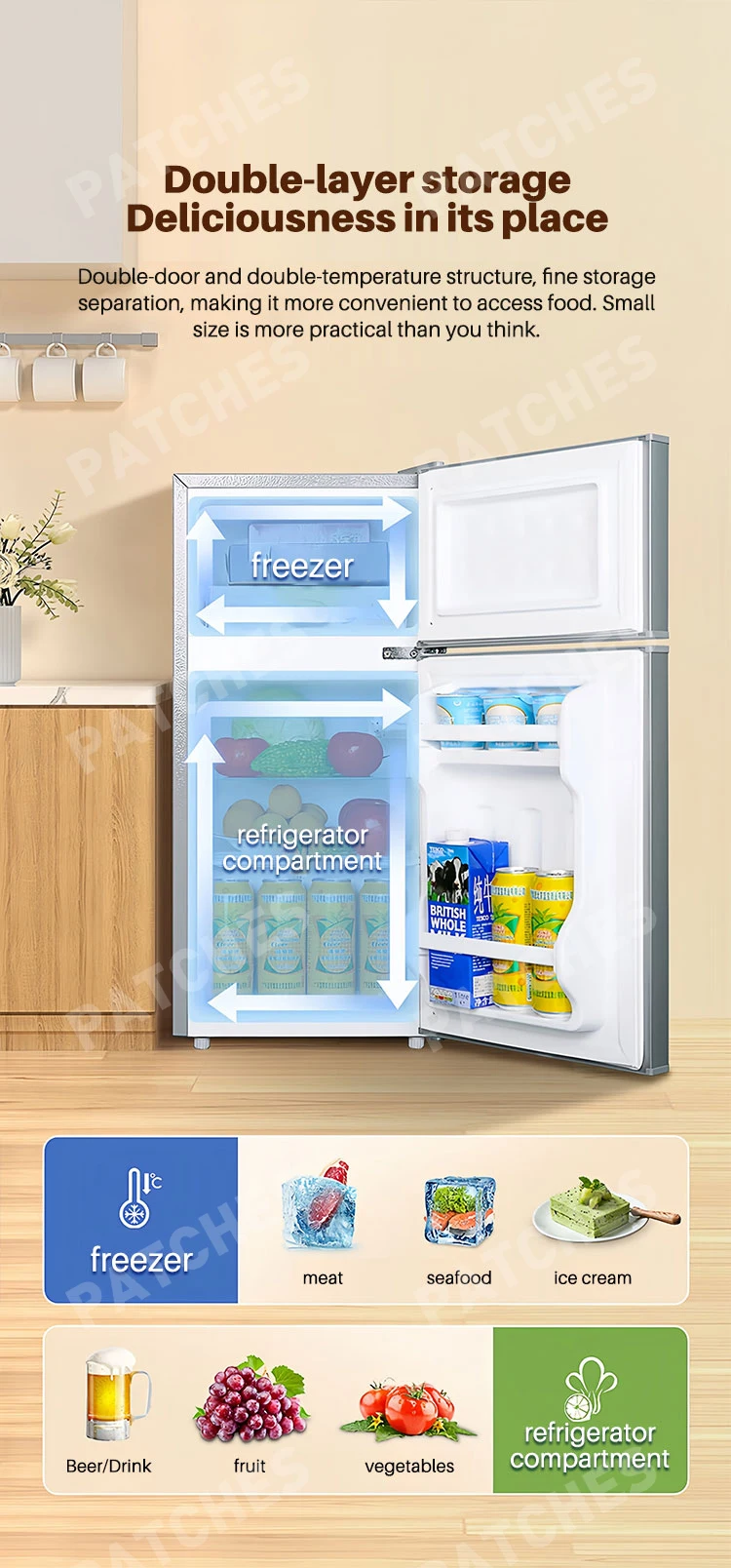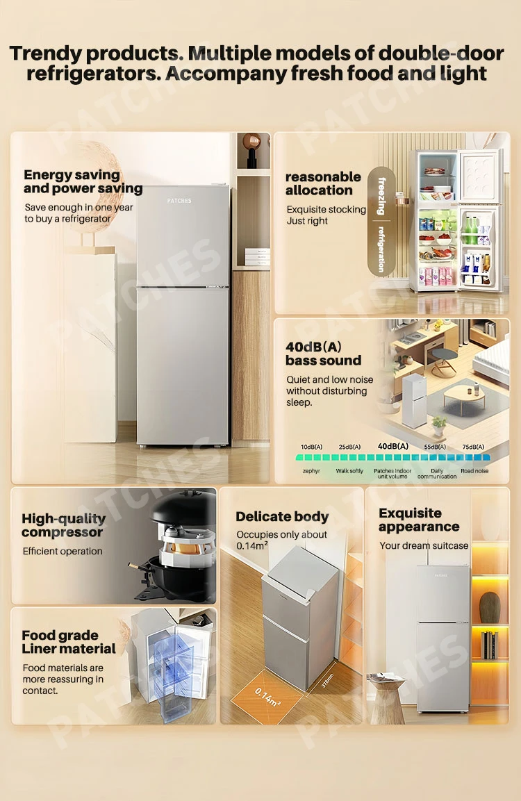 Custom Made Small Double Door Refrigerator Mini Fridge Double Door for Hotel Dormitory Apartment Use Portable Mini Fridge