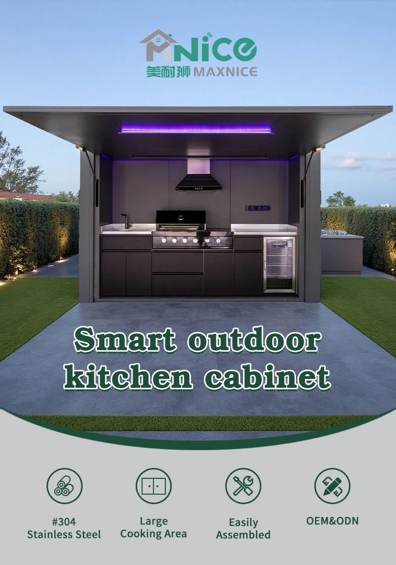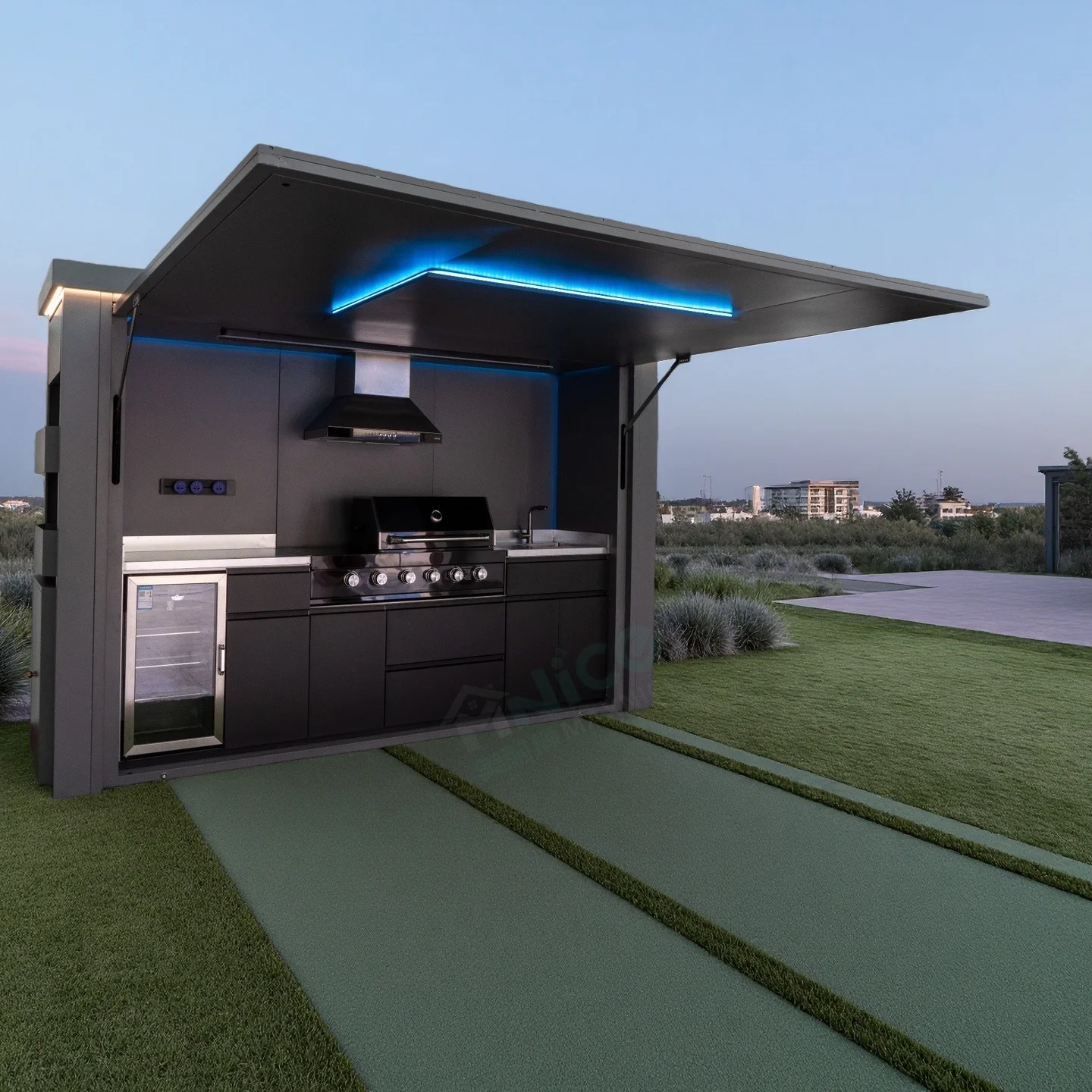 Customizable Aluminum-Framed Outdoor Kitchen with Sink, Grill & Fridge for Camping & Backyard Entertaining