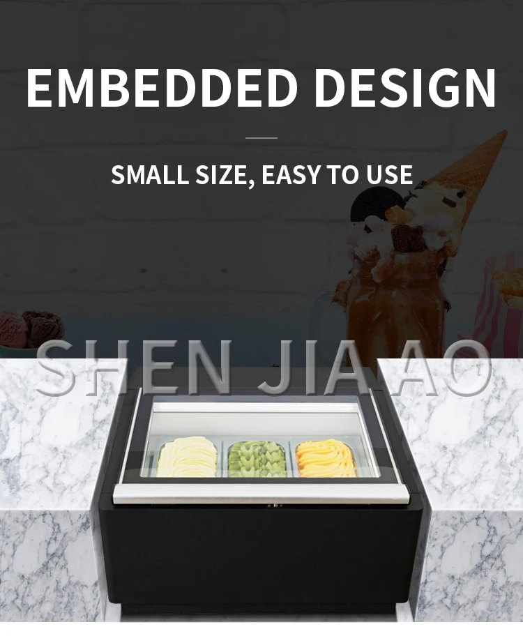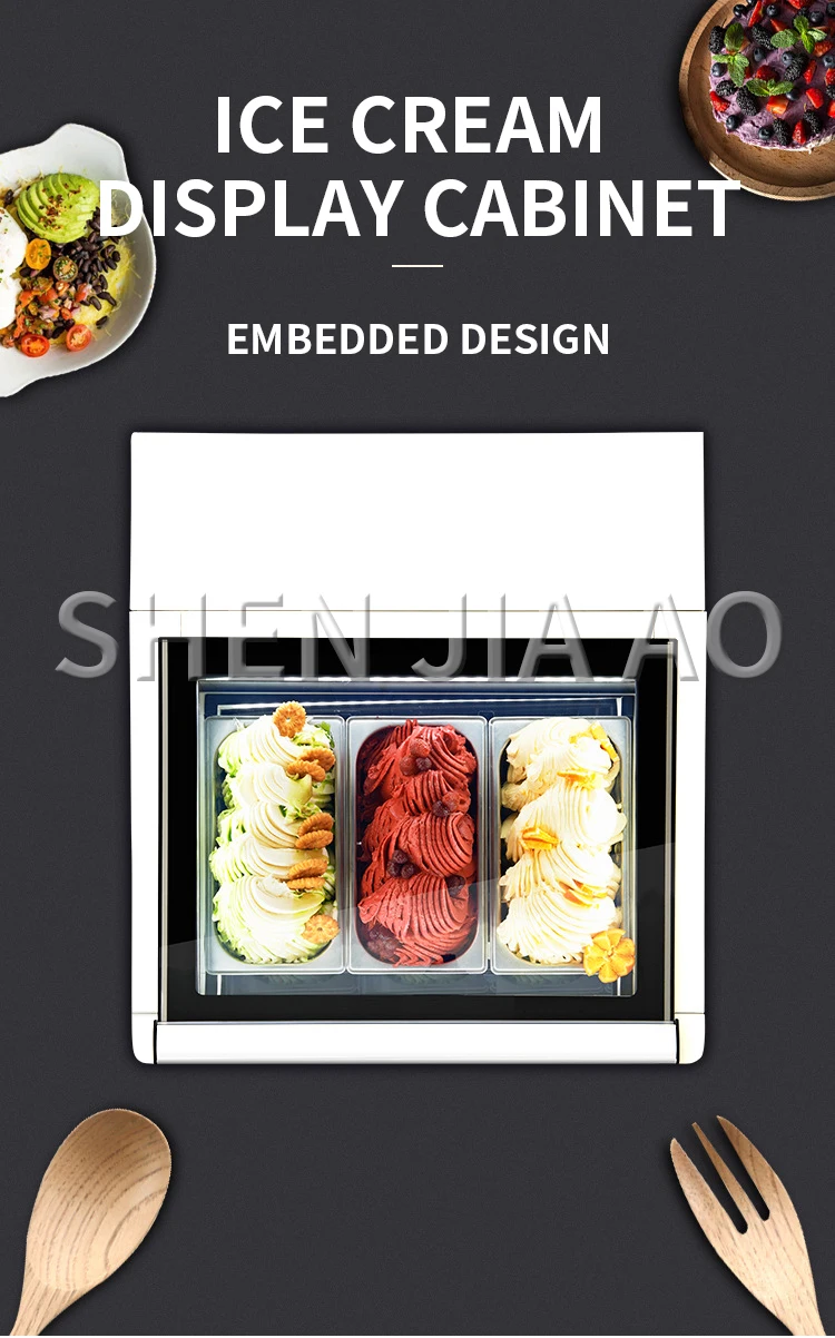 Desktop 3-Tray Ice Cream Display Cabinet Small Ice Cream Cabinet Desktop Direct Cooling Ice Cream Display Freezer