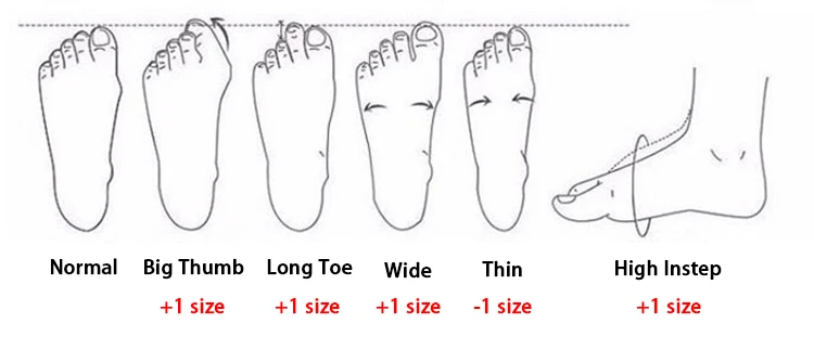 4.Please Choose the appropriate shoe size according your foot type as shown in the figure above.