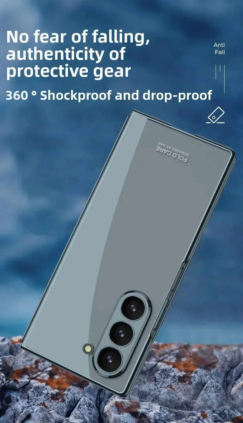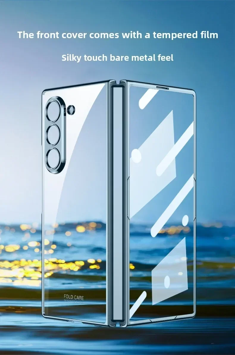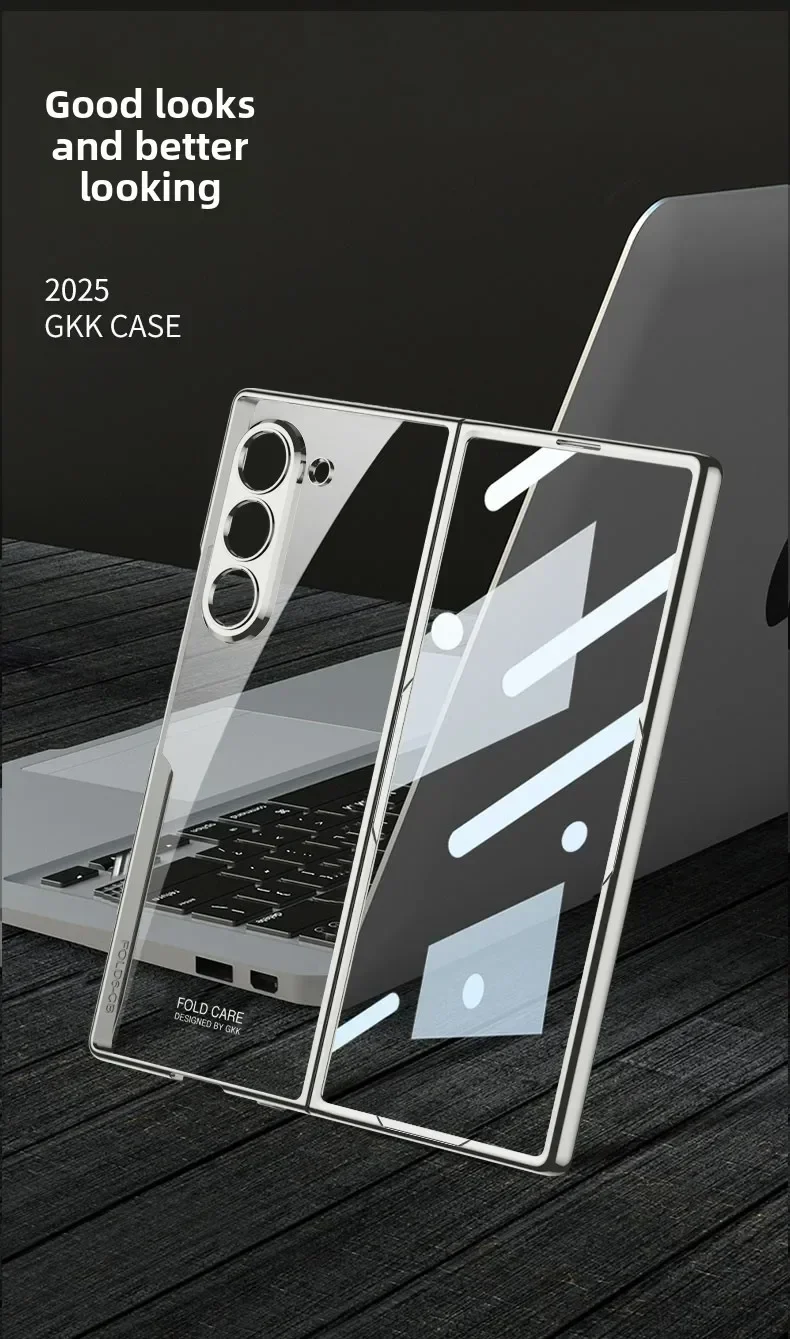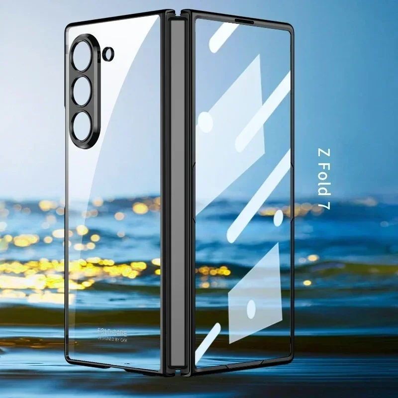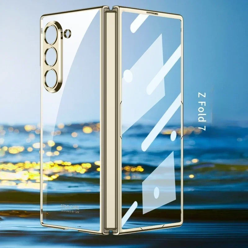 For Samsung Z Fold 7/6/5G Electroplating Phone Case Transparent Shell Film Shockproof Protective Cover for Fold 7/6 Hinge