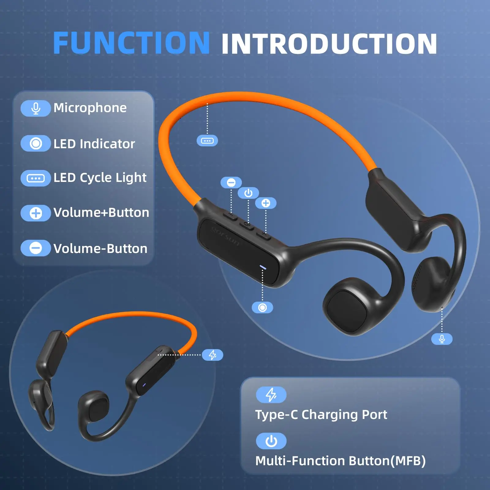 1. Open Ear Headphones: Different with traditional design, our open ear bluetooth headphones won’t cover your ears very tight. This lightweight and innovative design keeps your ears unobstructed, allowing you to remain aware of your surroundings while indulging in your favorite tunes. Perfect for outdoor adventures like jogging, cycling, or driving, our bluetooth headset with microphone ensure your safety without compromising on sound quality.