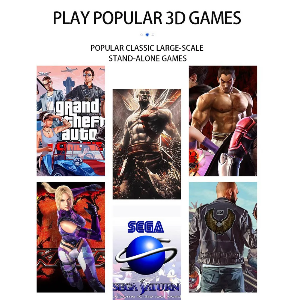 Support compatible with PSP, Saturns, PS1, N64, CP1, CP2, CP3, Neogeo, GBX, MAME, FC, FCE, SFC, GB, GBA, GBC, MDNGPC, MEGADRIVE, GAMEGEAR, SEGAGENESIS, SG-1000 and other 40+ simulators, games can be added