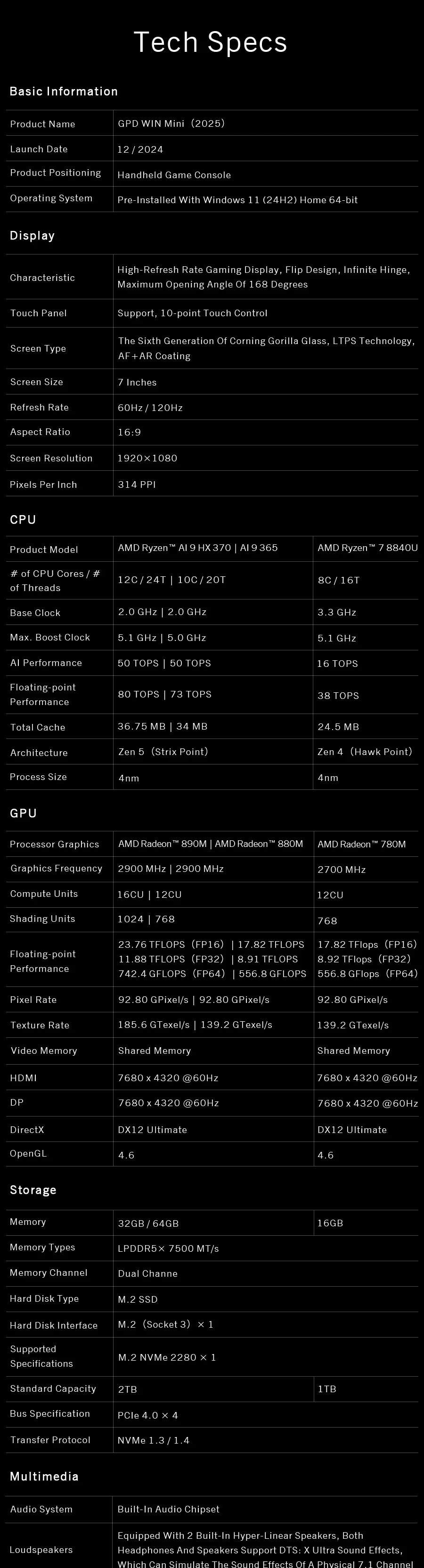 A 7-inch, 120Hz high-refresh-rate gaming screen specially designed for WIN Mini. It features native landscape , sixth-generation Corning Gorilla Glass, LTPS technology, supports VRR (Variable Refresh Rate), and AMD FreeSync Premium. No more worries about screen tearing in games and no need for frame locking, allowing for full performance release!