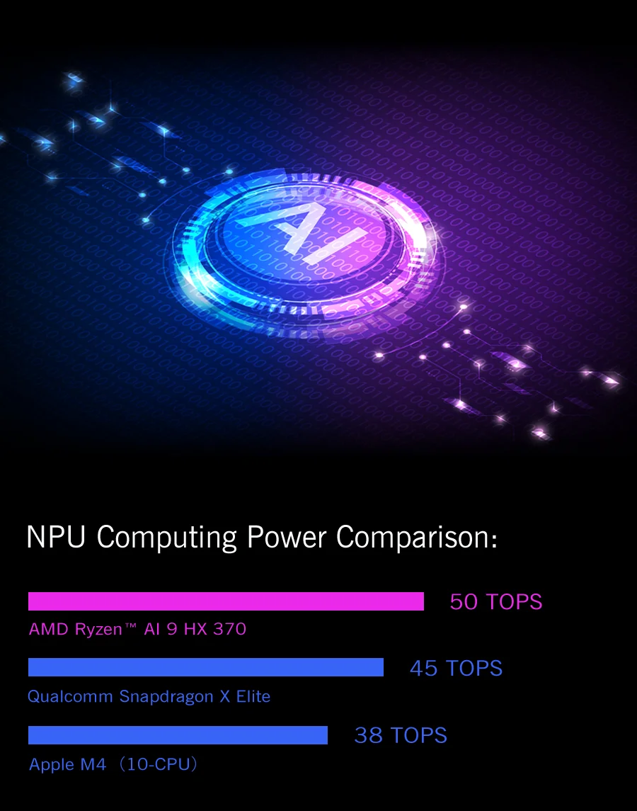 Utilizing advanced 4nm manufacturing process, ZEN 5 + RDNA 3.5 + XDNA 2 architecture, experience cutting-edge artificial intelligence (AI) technology, accelerate multitasking, boost productivity, foster collaboration, and enhance efficiency.