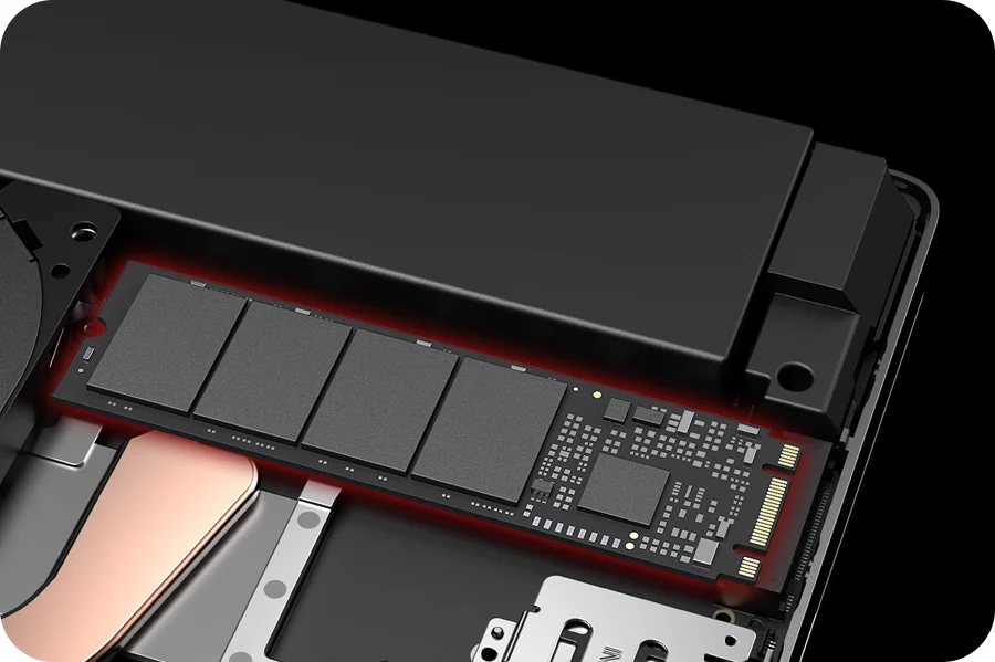 PCIe Gen4 M.2 2280 SSD, with large capacities ranging from 1TB to 2TB, and read/write speeds exceeding 5000MB/s, allowing for unlimited expansion.