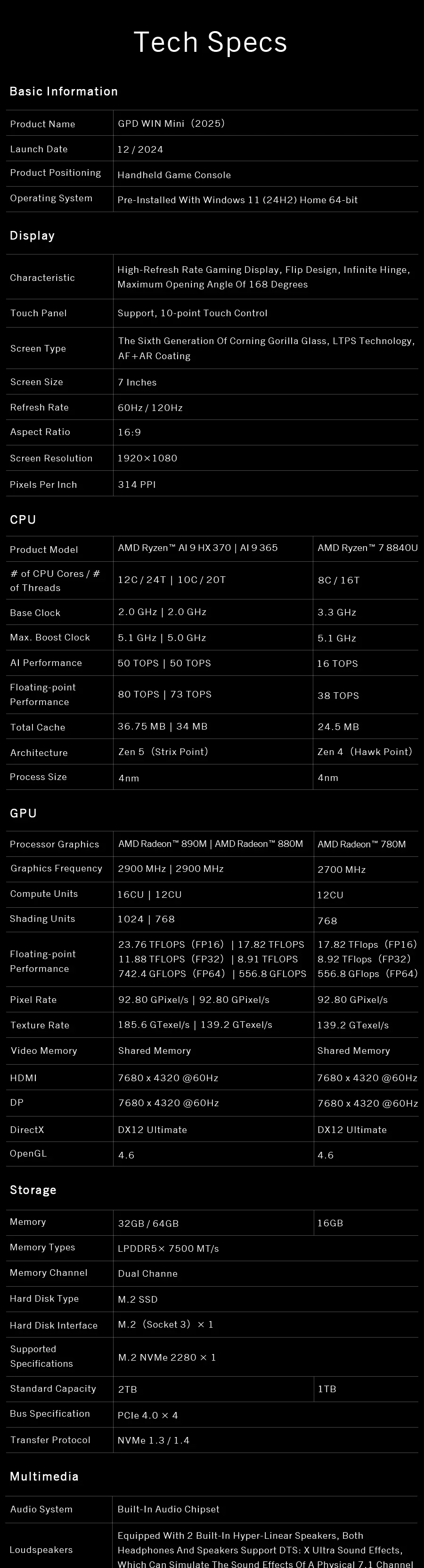 A 7-inch, 120Hz high-refresh-rate gaming screen specially designed for WIN Mini. It features native landscape , sixth-generation Corning Gorilla Glass, LTPS technology, supports VRR (Variable Refresh Rate), and AMD FreeSync Premium. No more worries about screen tearing in games and no need for frame locking, allowing for full performance release!