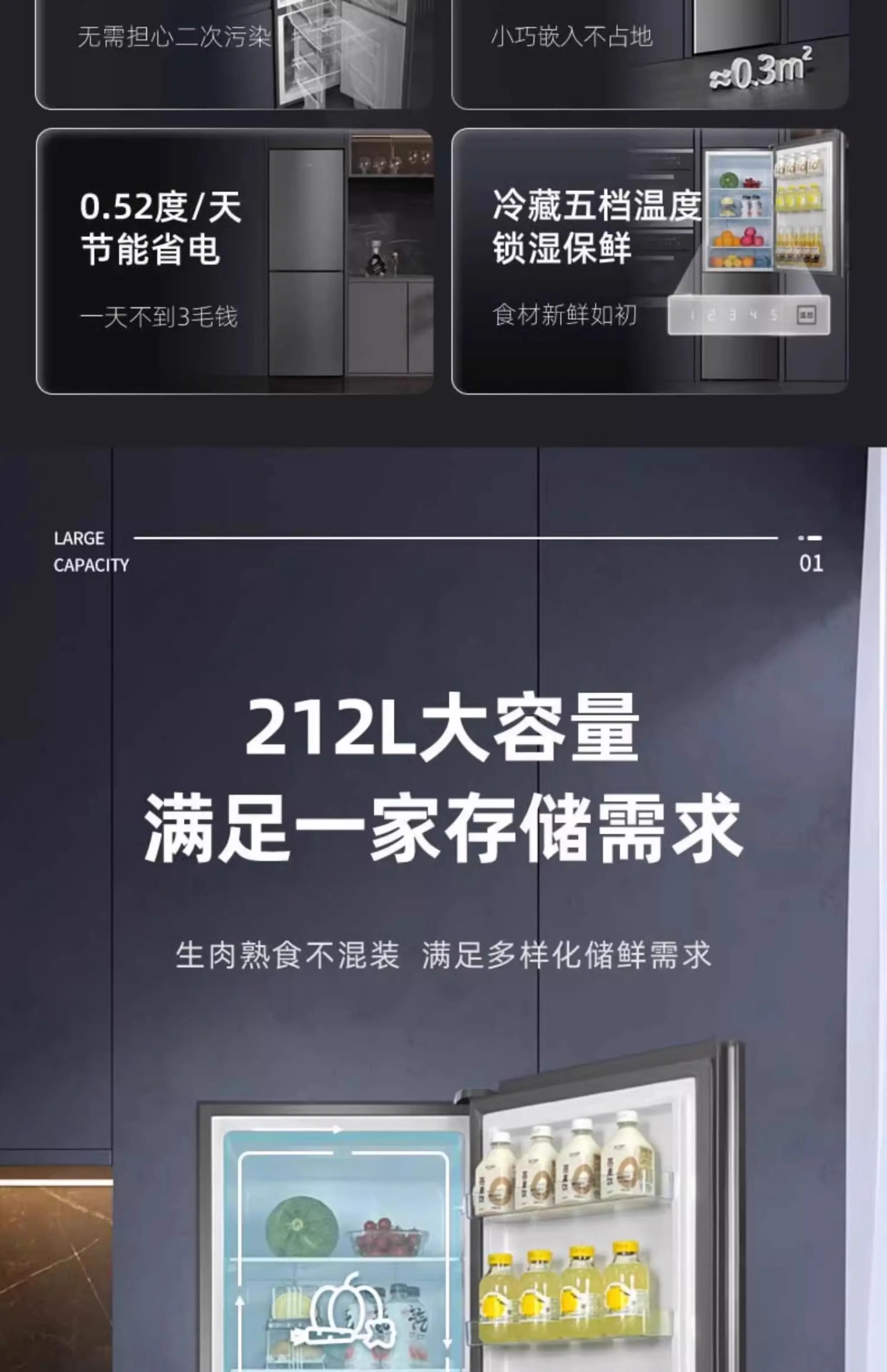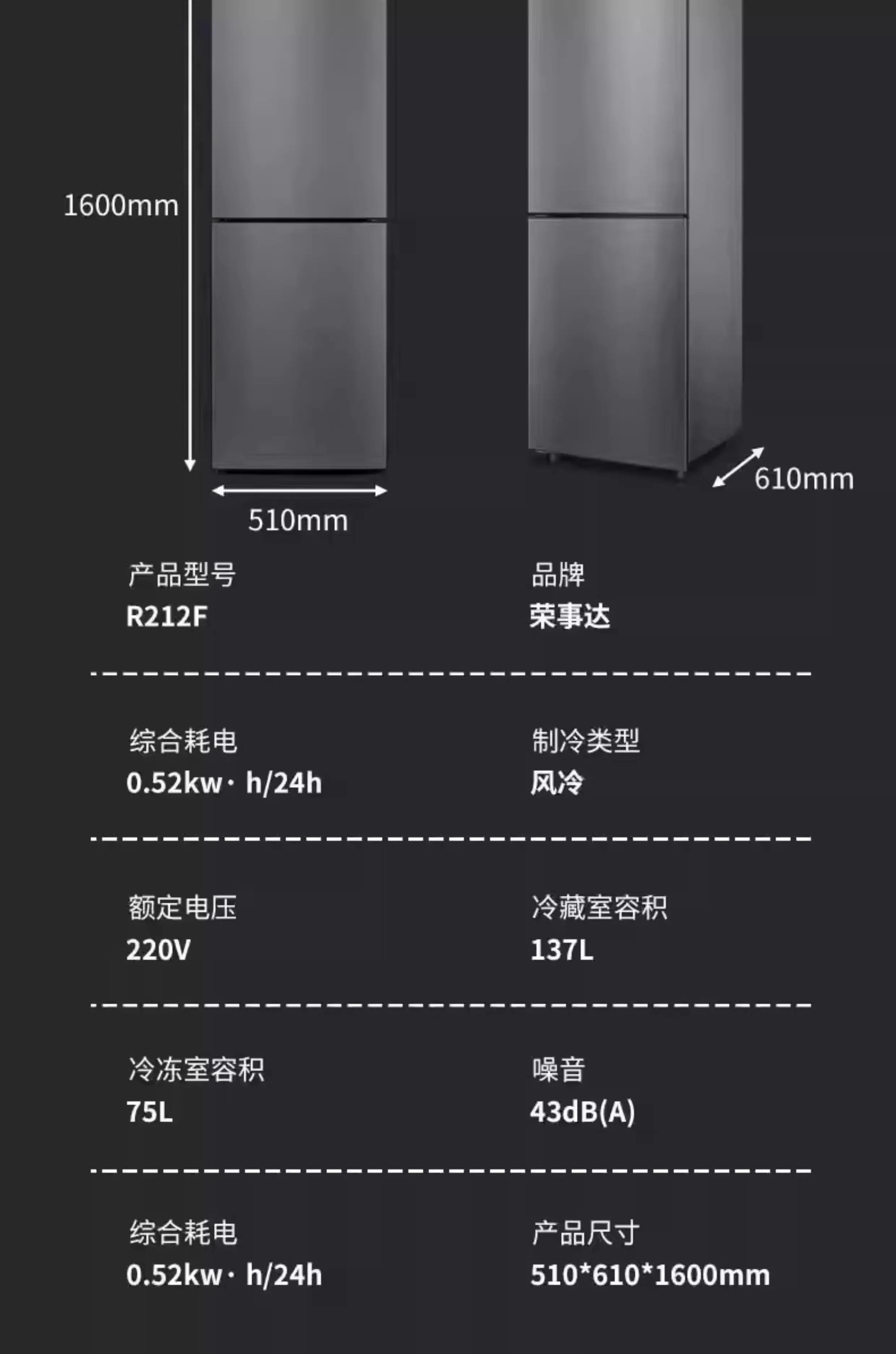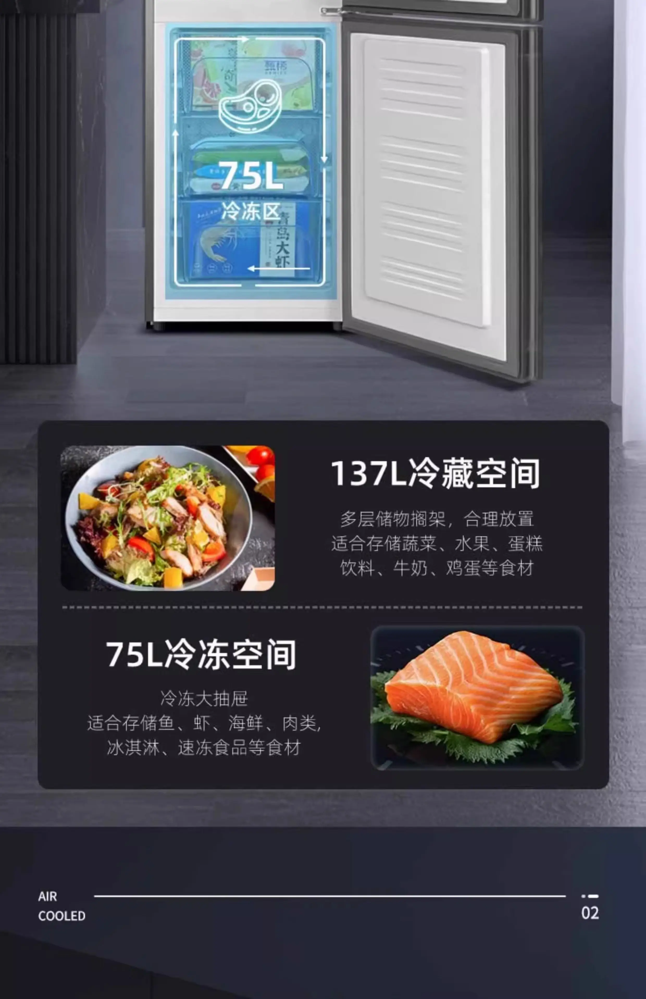 HXL Air-cooled Frost-free Refrigerator Small Freezer Energy-saving Refrigerator