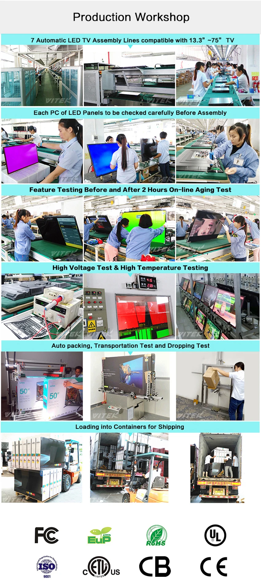 Shenzhen Vitek Electronics Co., Ltd. was established in 1996, is a TV OEM/ODM manufacturer in International mainland, covering an area of over 25,000 square meters, with a production capacity of 1.5 million units annually. We have 7 CBU assembling lines and over 500 employees. Vitek integrates R&D, design, manufacturing and sales.