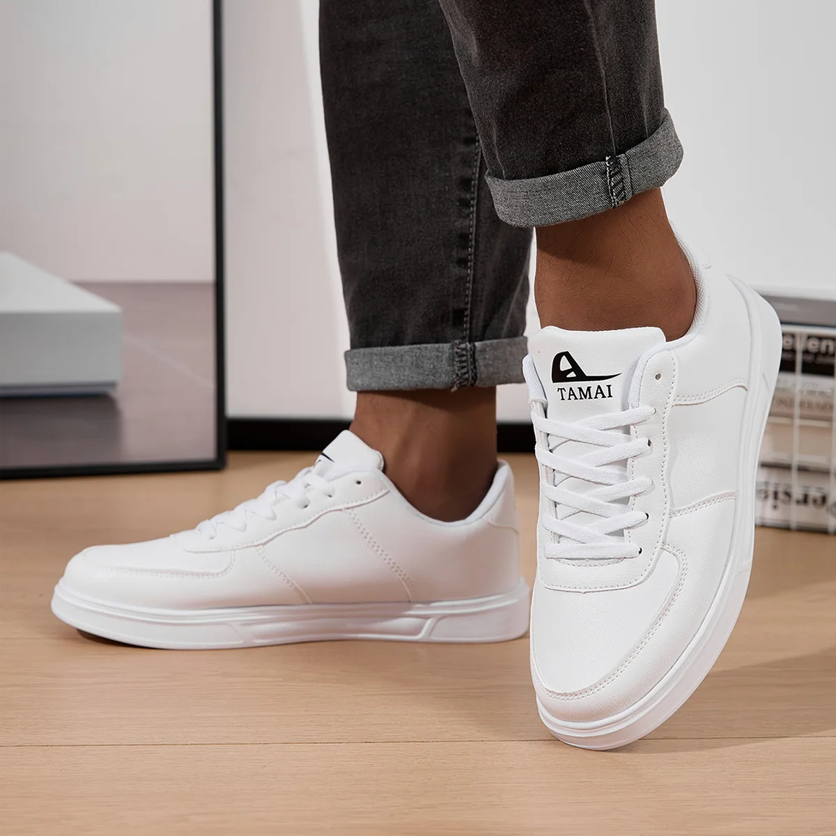 Leather Men White Sneakers Breathable Skateboarding Shoes Mens Outdoor Walking Running Shoes Couple Casual Shoes Size 36-45