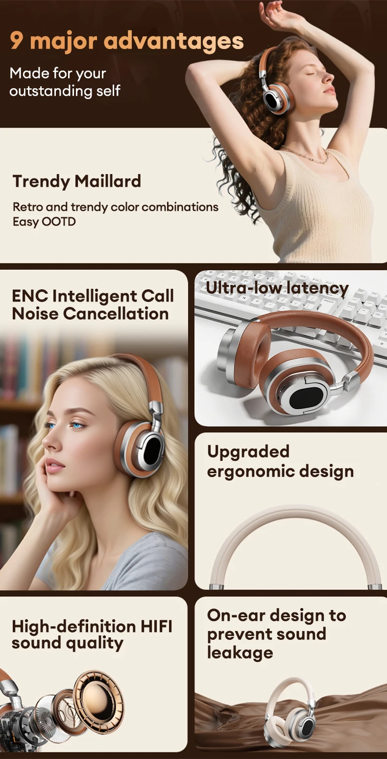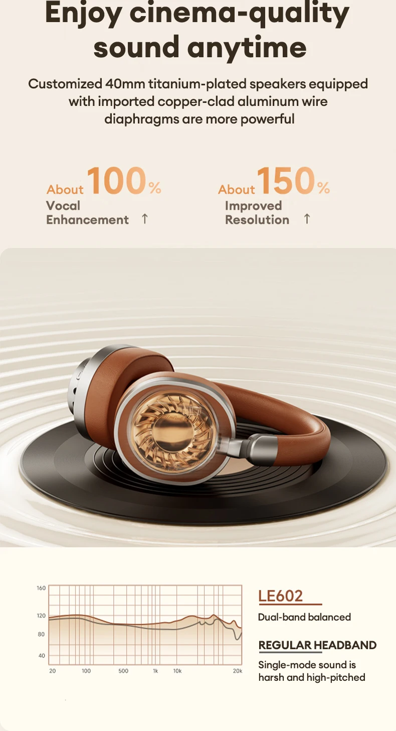 2.【Immersive Hi-Fi Sound / Custom Large Driver】:A customized 40mm titanium-plated driver with dual-band balancing technology delivers theater-like, powerful sound with high-definition clarity and enhanced vocals.