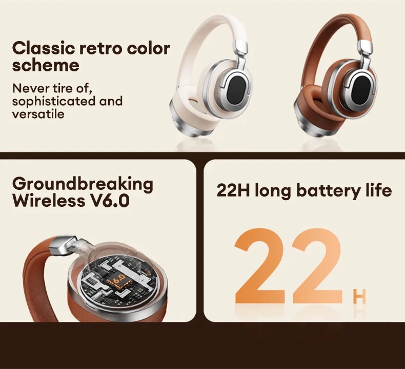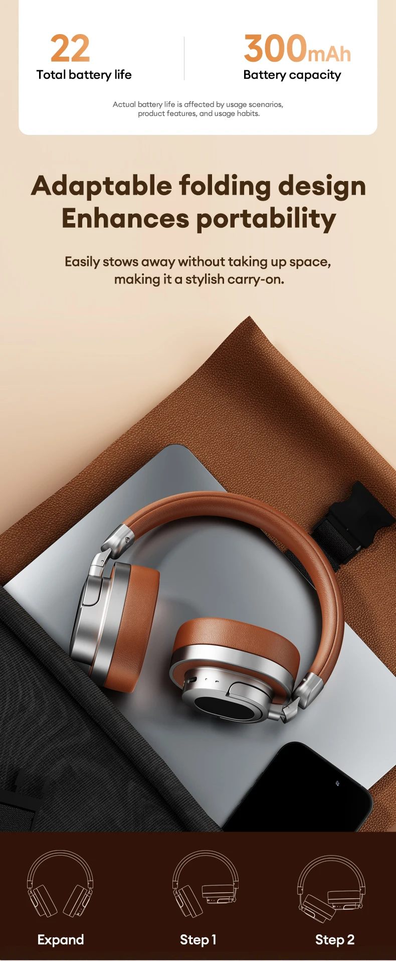 The 300mAh battery supports up to 22 hours of wireless playback, features Type-C fast charging, and folds for easy storage and portability.