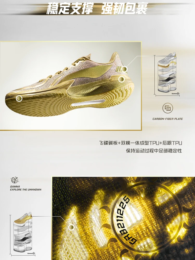 Li Ning Gamma Official Genuine Low Top Basketball Men’s Shoes Lightweight Carbon Plate Professional Practical Men’s Sports Shoes