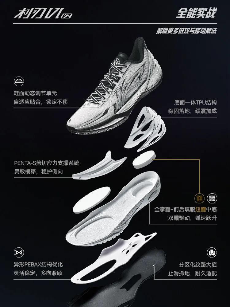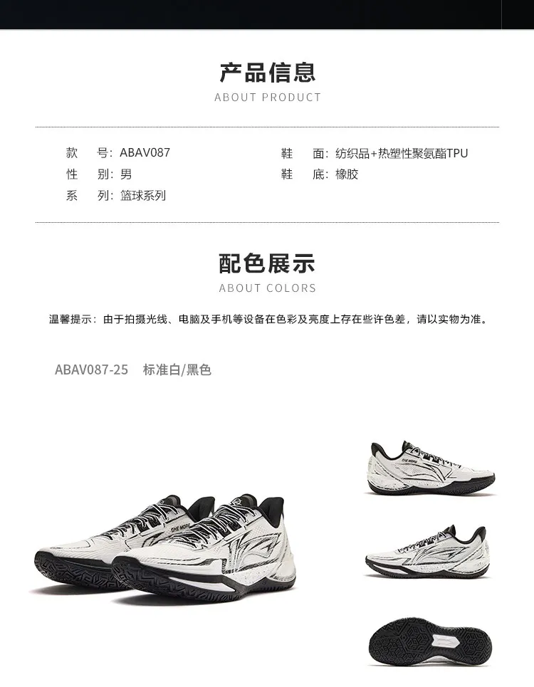LiNing sword 6v2 wear-resistant anti-slip support stable round head men’s sports basketball shoes men