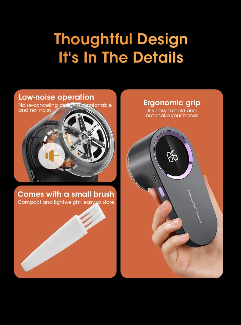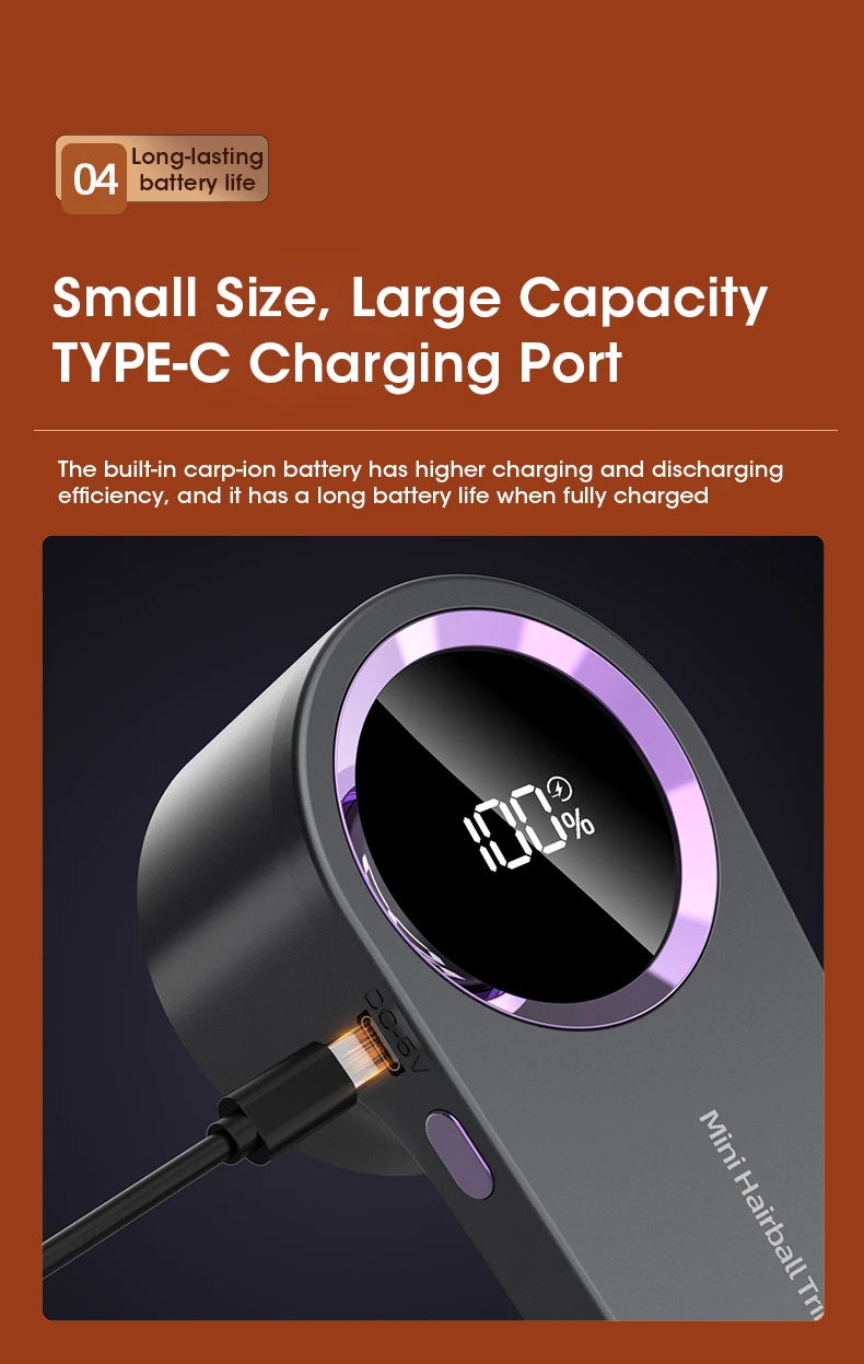 【LED Digital Display & Rechargeable】The Sweater Shaver using high-tech LED display. Easy to see power and charging status.Type-C USB charging interface with 5V/1A, suitable for global voltage range of 110V-240V.