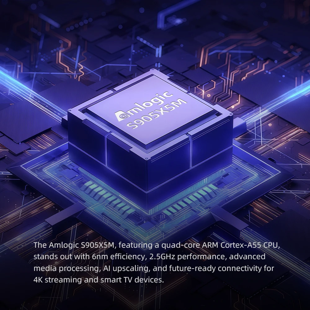 Powered by the efficient Amlogic processor, enjoy smooth performance and quick response times for all your streaming needs.