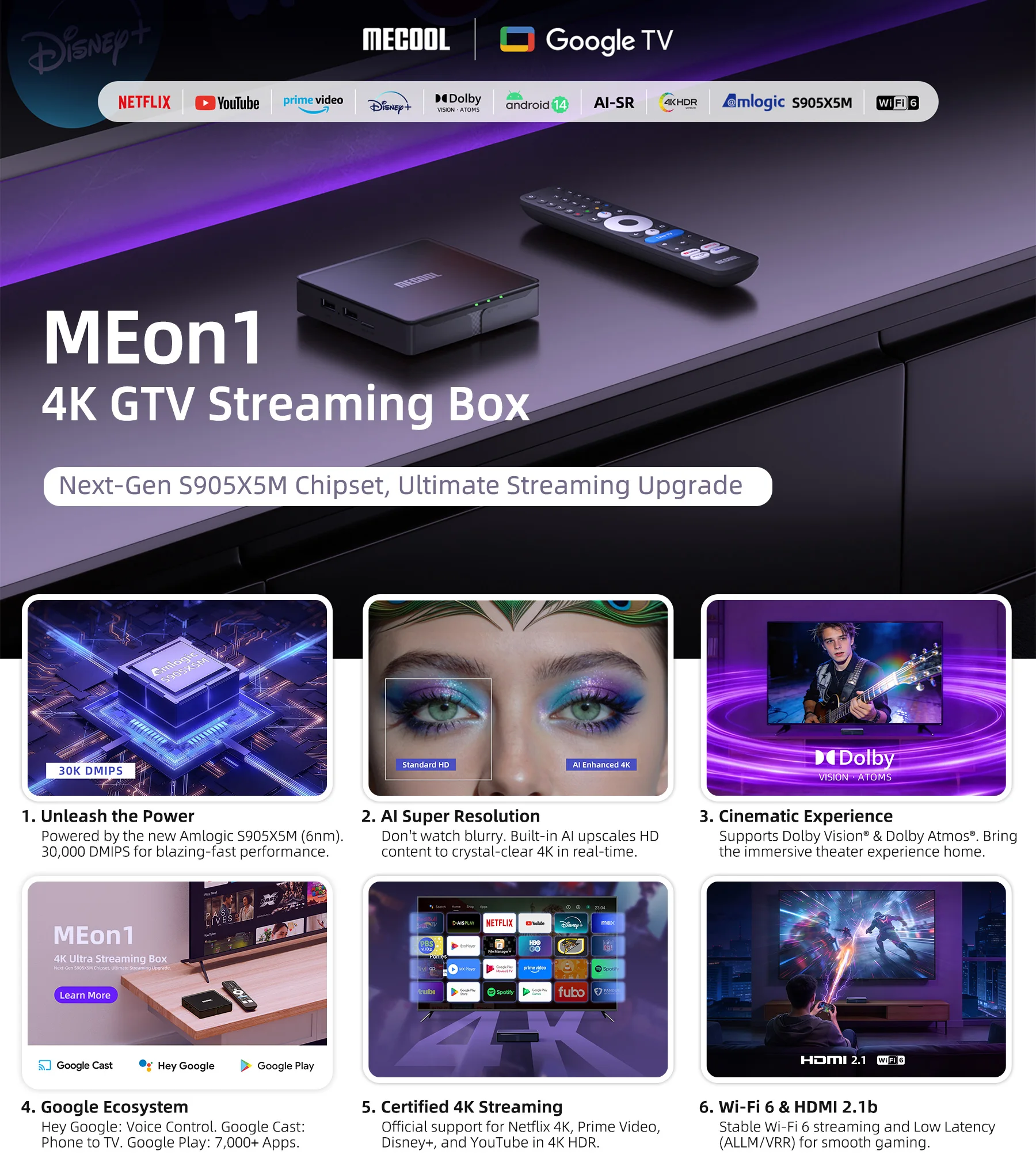 Run a wide range of apps and games on the MECOOL 2026 with its Google TV OS, providing a versatile and user-friendly interface.
