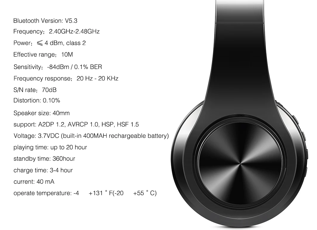1)【HI-FI,CD SOUND QUALITY】- The closed-back design of bluetooth headphones provides immersive Hi-Fi sound with BLUETOOTH V5.3 chip and 40mm driver together , which make exceptional sound reproduction and wide dynamic range to provide outstanding sound quality, rich and strong bass, crisp and clear highs.