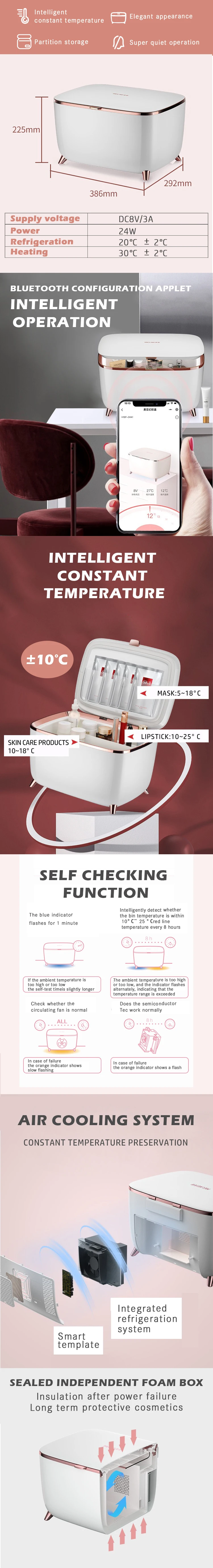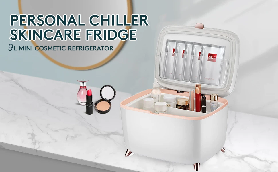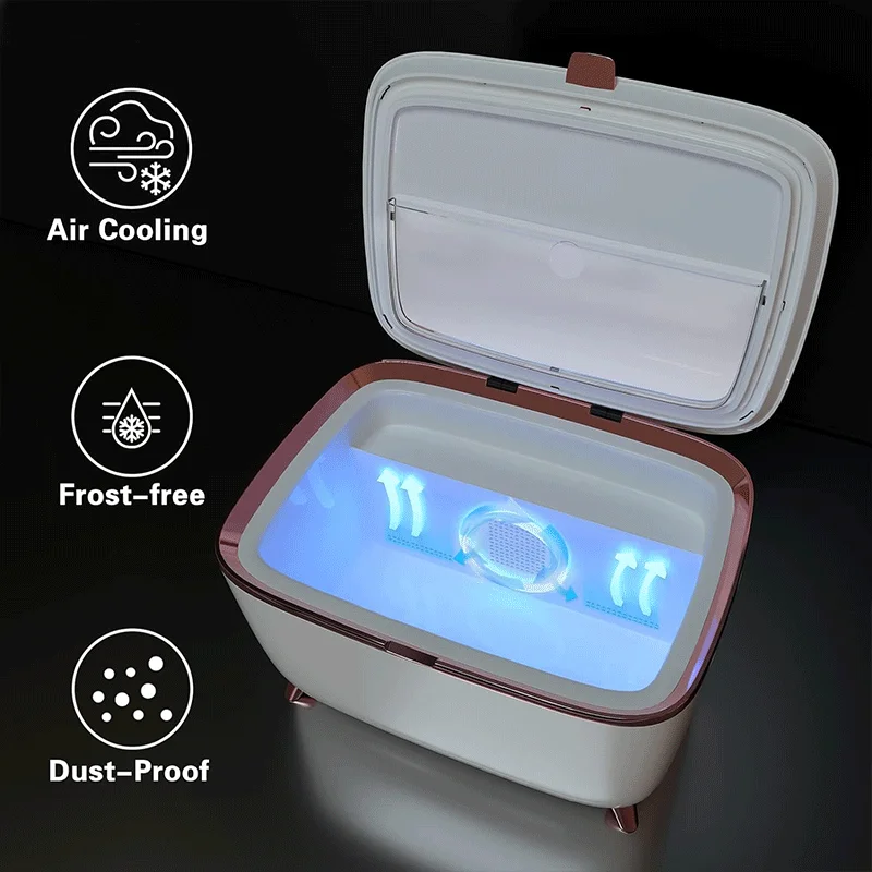[Professional Little Fridge]mini skin care fridge maintains your skincare products&cosmetics at 12℃/53°F to deliver a refreshing&cooling effect, instantly perk tired skin up. [Frost-free&Cosmetic storage] LVARA’s built-in air-cooling system guarantees that your skincare products never freeze. Temperatures around 53°F will extend the shelf life of your favorite skincare products and cosmetics such asperfume, cream, mask, lipstick.