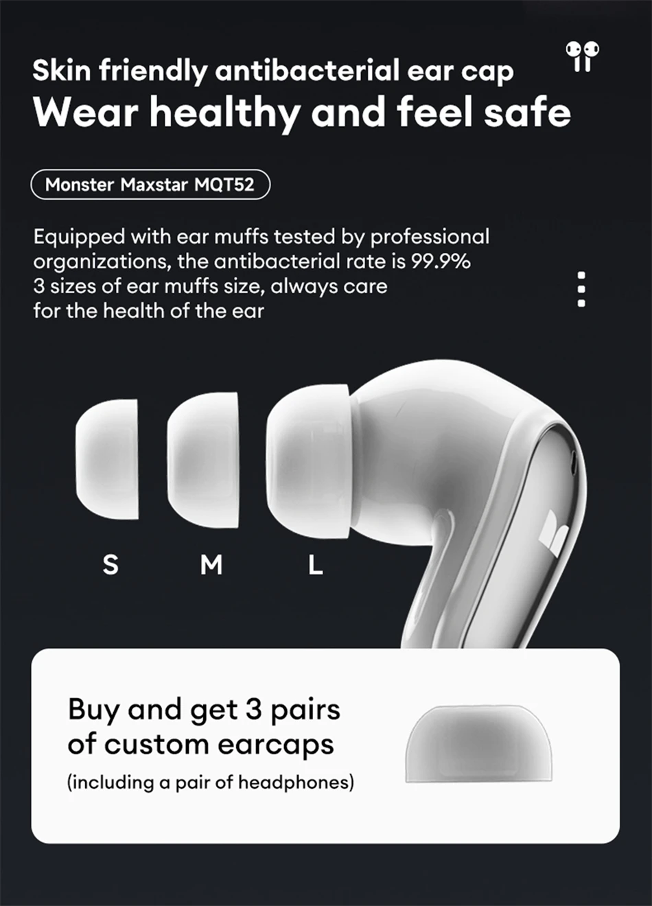 [Lightweight Comfort / Skin-Friendly Material]: Weighs only 4.4g per earbud and features antibacterial ear caps tested with a 99.9% antibacterial rate, available in 3 sizes to ensure healthy and comfortable wear.
