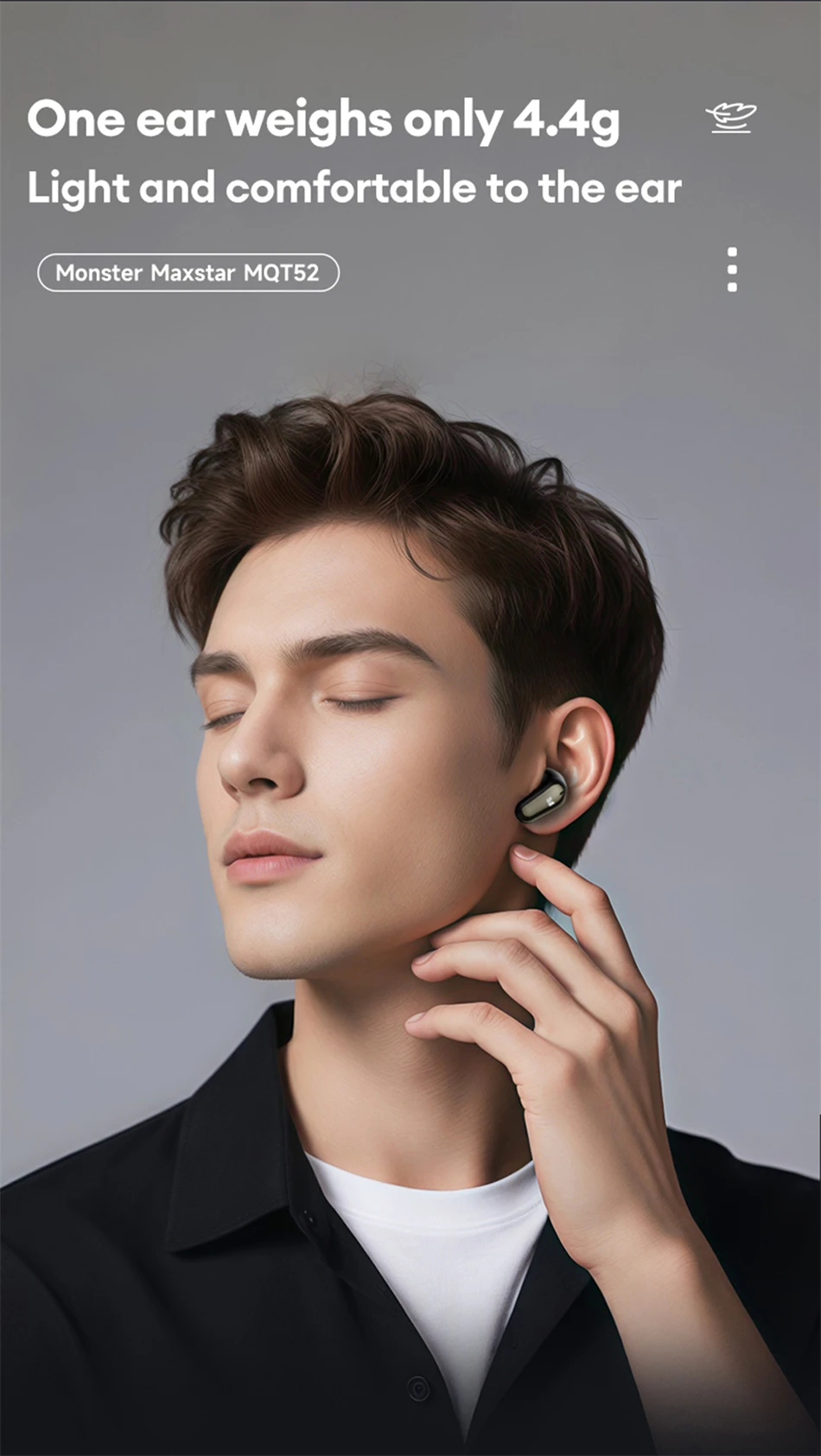 One ear weighs only 4.4g Light and comfortable to the ear