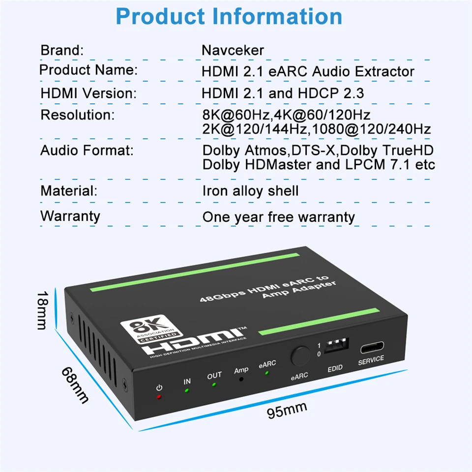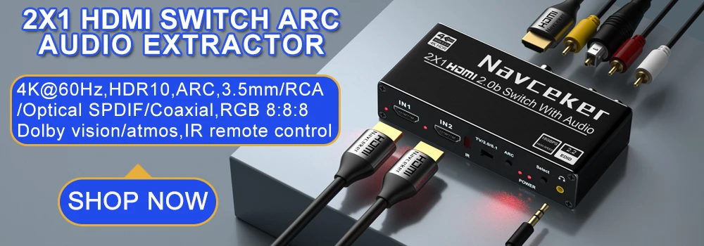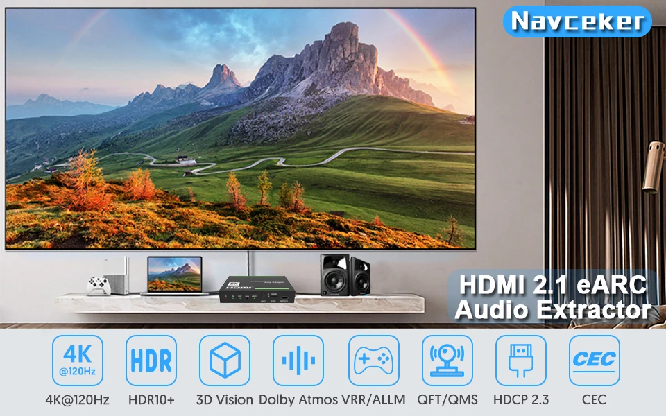 📂Navceker HDMI 2.1 audio extractor supports 8K@60Hz 12 bit,4K@120Hz 12bit,4K@60Hz,