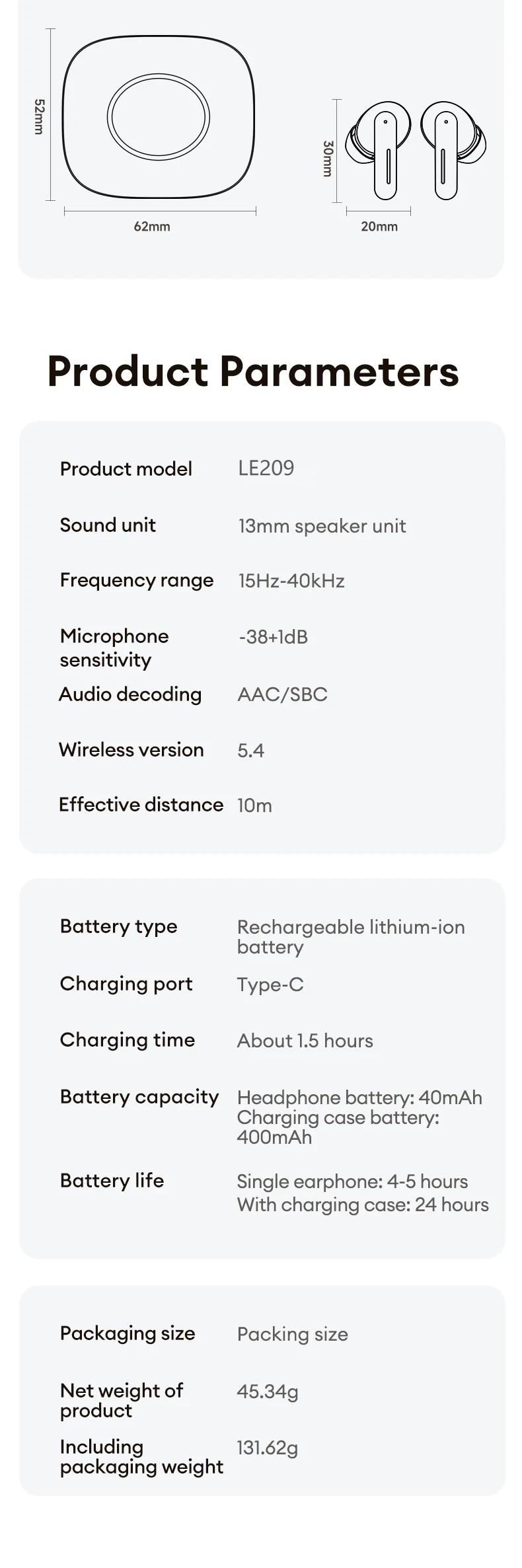 [Headphone battery capacity]:40mAh