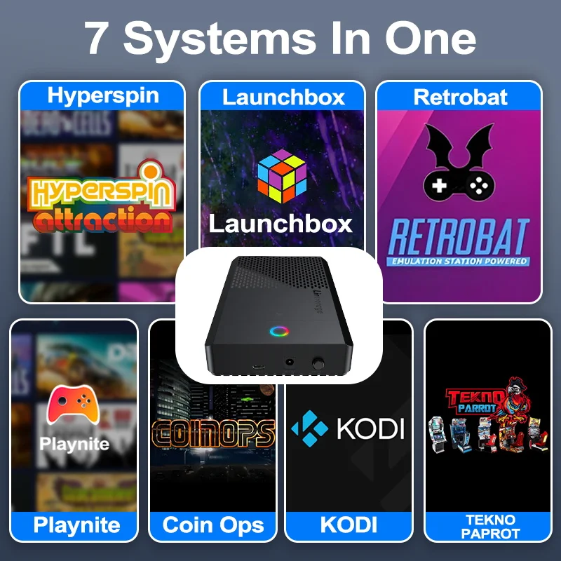 ✨ Seven-in-one game system: Hyperspin/Launchbox/Retrobat/Playnite/TeknoParrot/Coinops next 2 and ko-di seven-in-one system. Six game front-ends are optional, experience multiple gameplay.