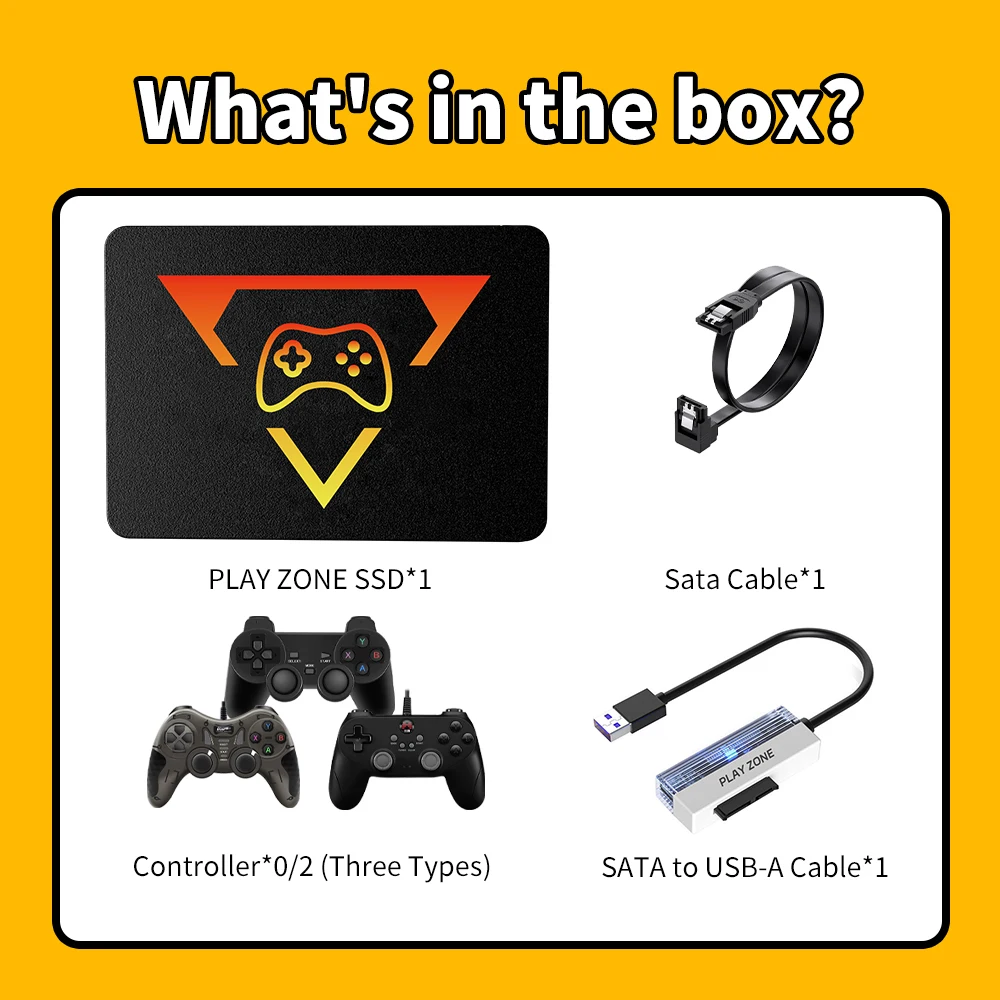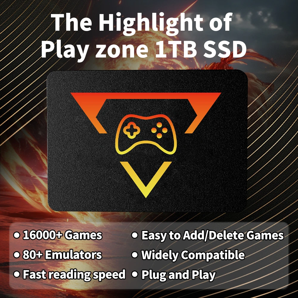 This Play zone 1TB SSD built-in 16000+ Games, including 86 AAA Games, 4321 3D Games and 11784 Retro Games
