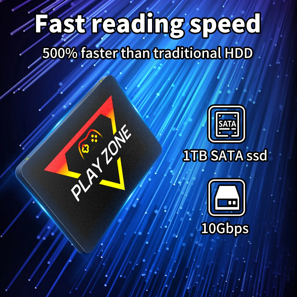 1TB SATA SSD, speed up to 10Gbps and using SSD to store and read data is 500% faster than traditional HDD, giving you an excellent experience