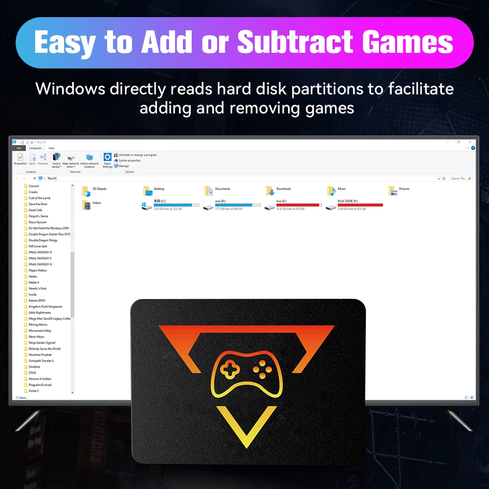 In this 1TB game ssd, windows directly reads hard disk partitions to facilitate adding and removing games.