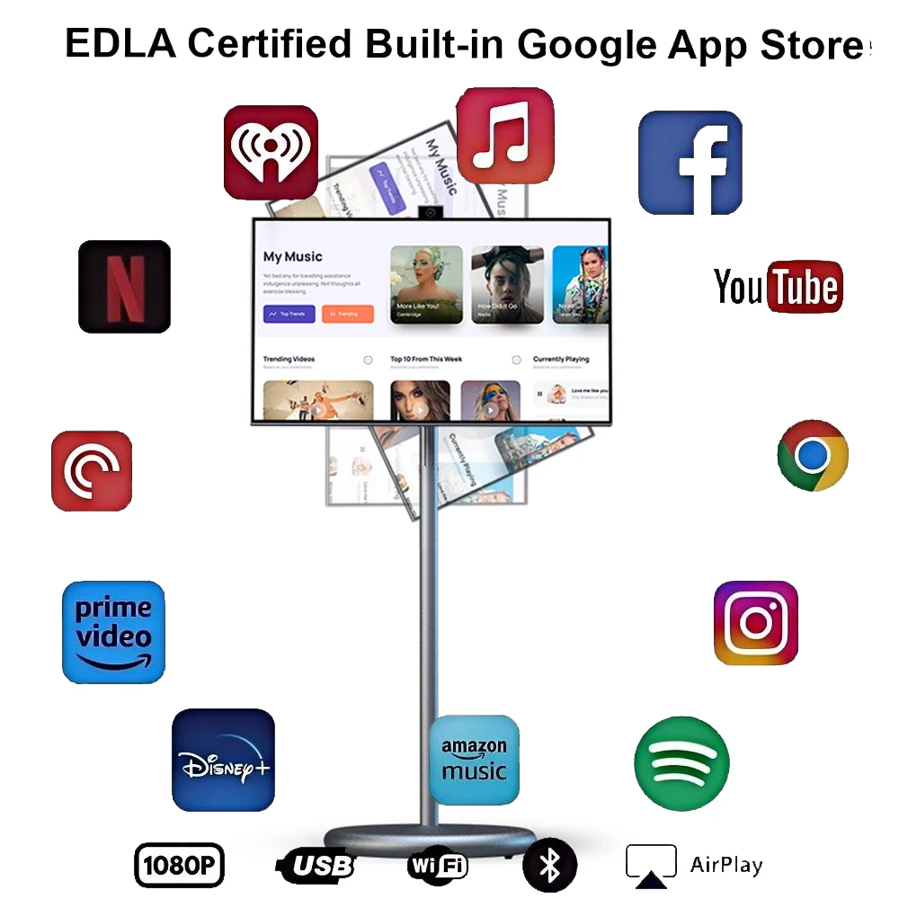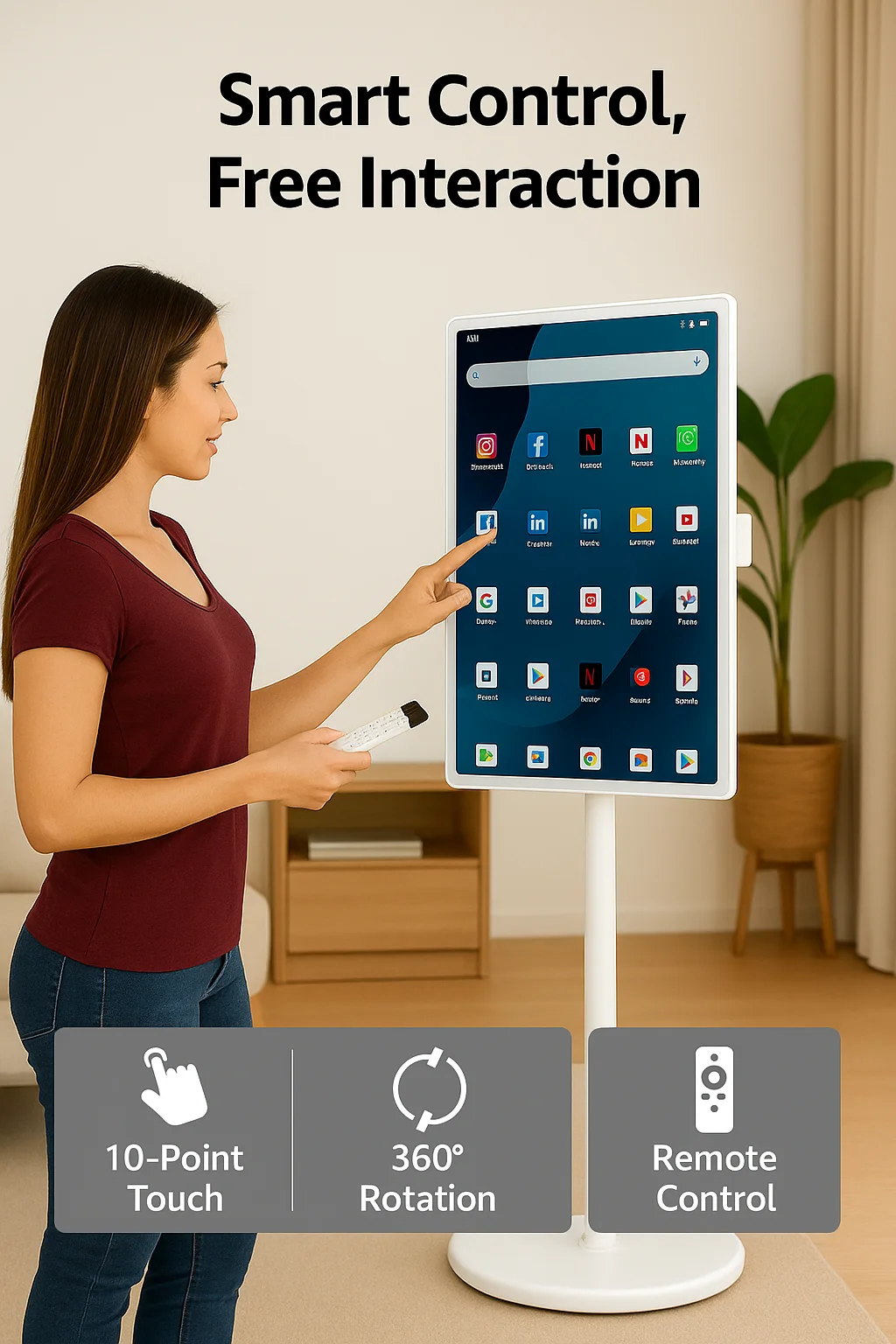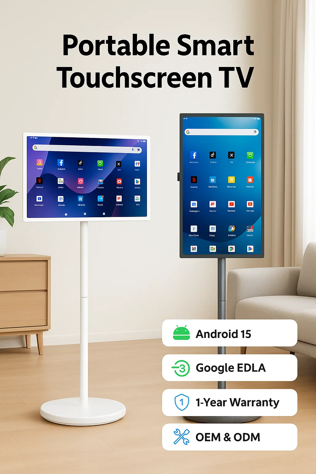 Portable Smart TV with Android 15 – Movable Touchscreen Display with Battery and Rotatable Stand