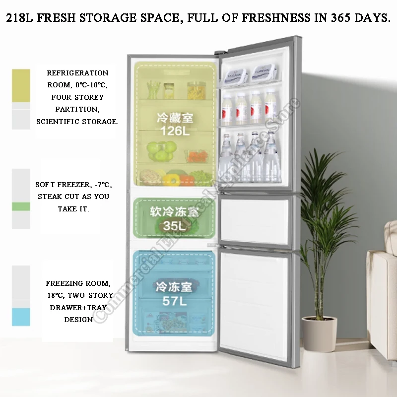 Refrigerator Household Three Doors 218 Liters Energy-Saving Fresh-Keeping Freezer