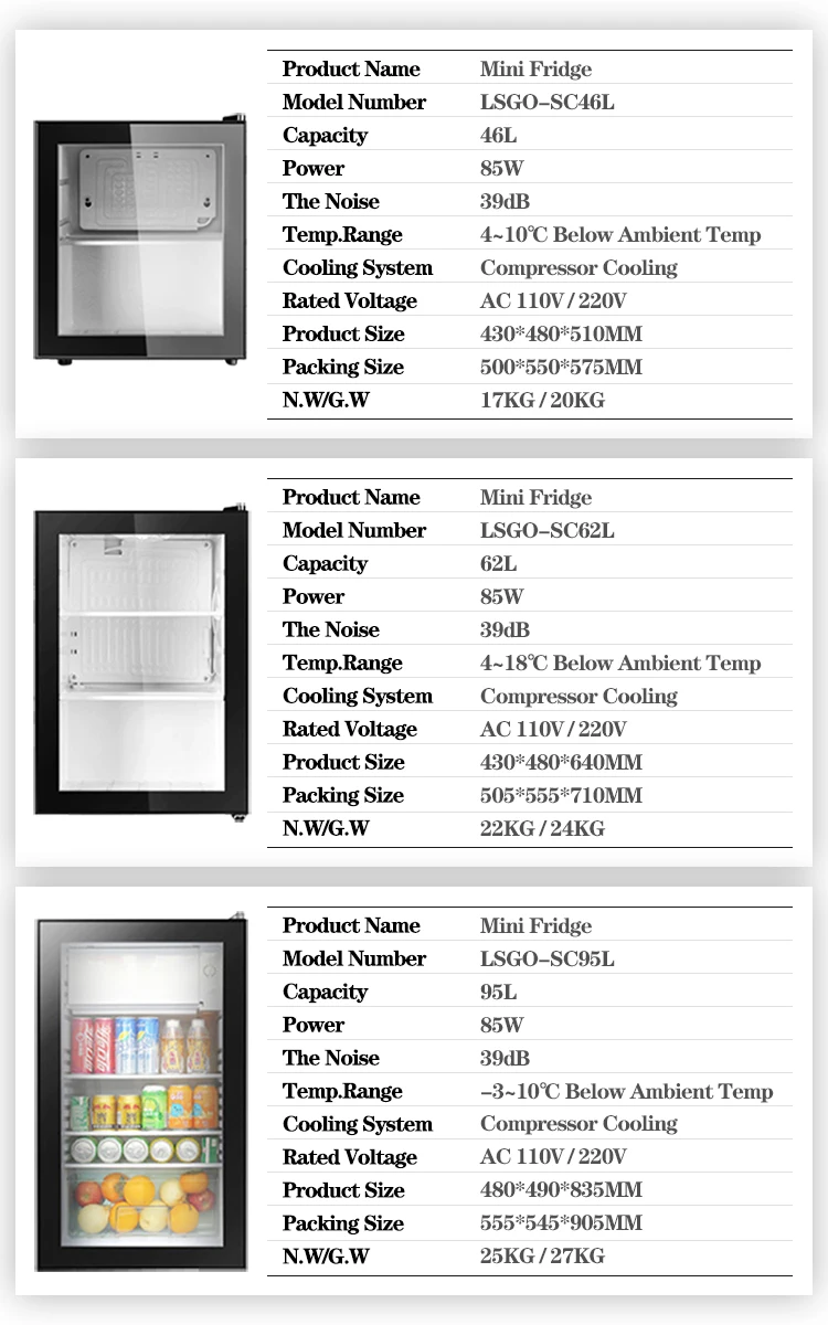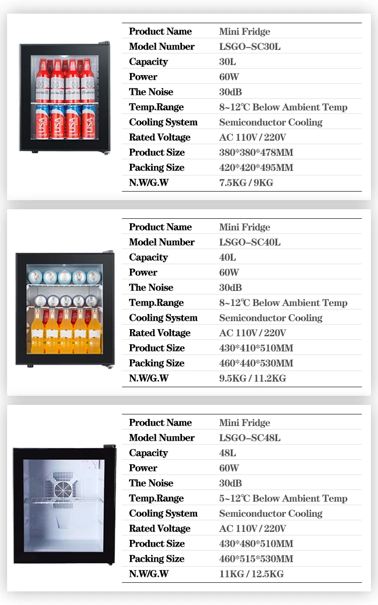 Refrigerators 30L/ 40L/ 60L Bar Fridge Glass Door Hotel Frigo Minibar Fridge Small Compact Mini Nevera