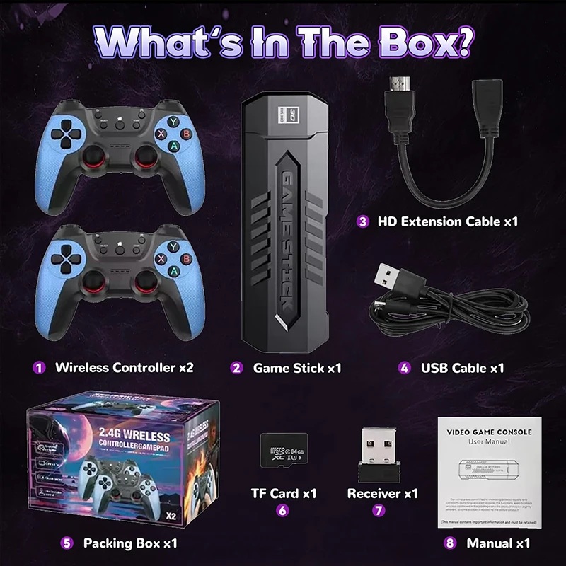 1. Memory card maintenance: Do not forcefully remove the TF memory card while the memory stick is running, as this may result in data loss or damage. If you need to replace the storage card, please turn off the power of the gaming stick first.