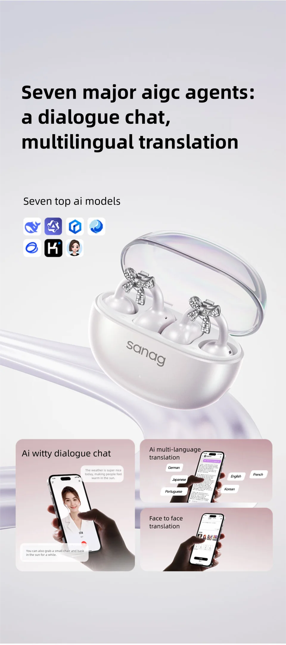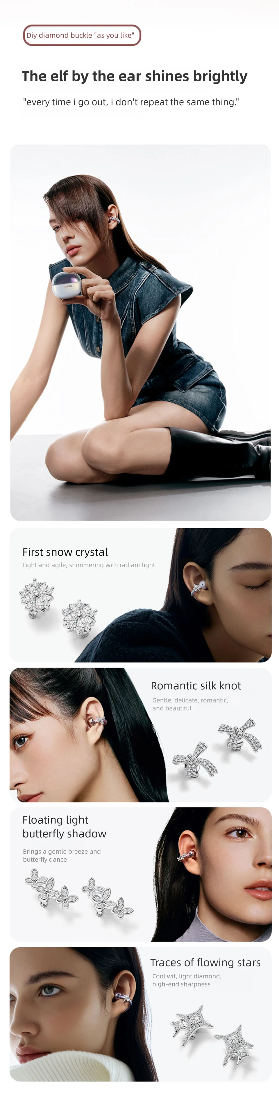 Sanag S6S Nova Ear Clip on Headphones Fashion Earrings for Women Wireless Bluetooth Earphones Anniversary Valentines Day Gifts