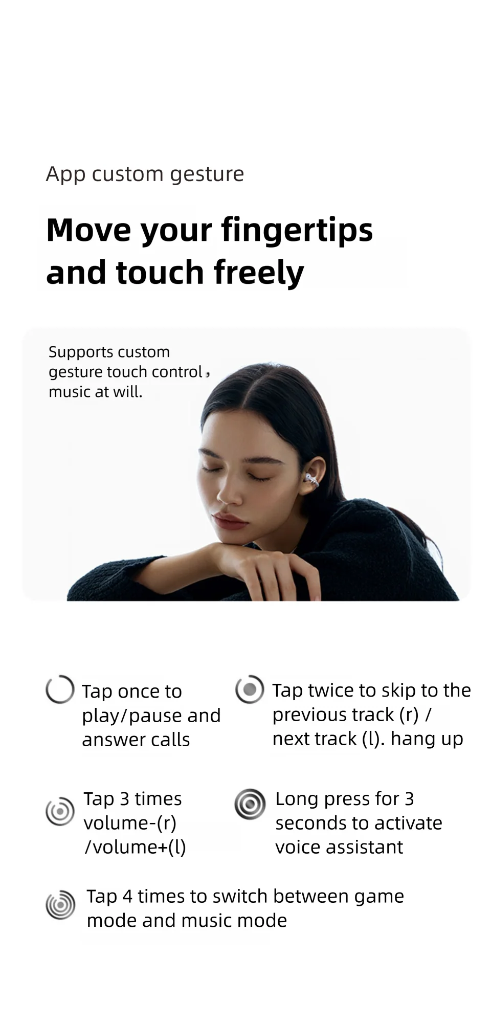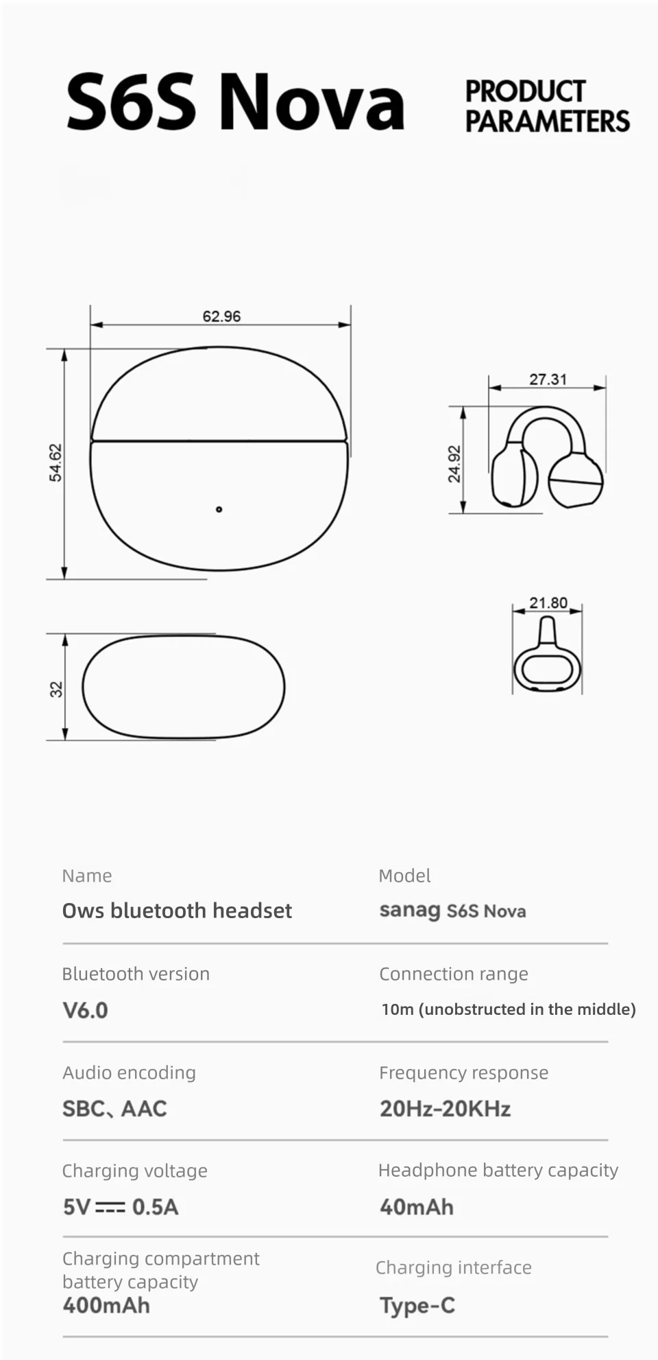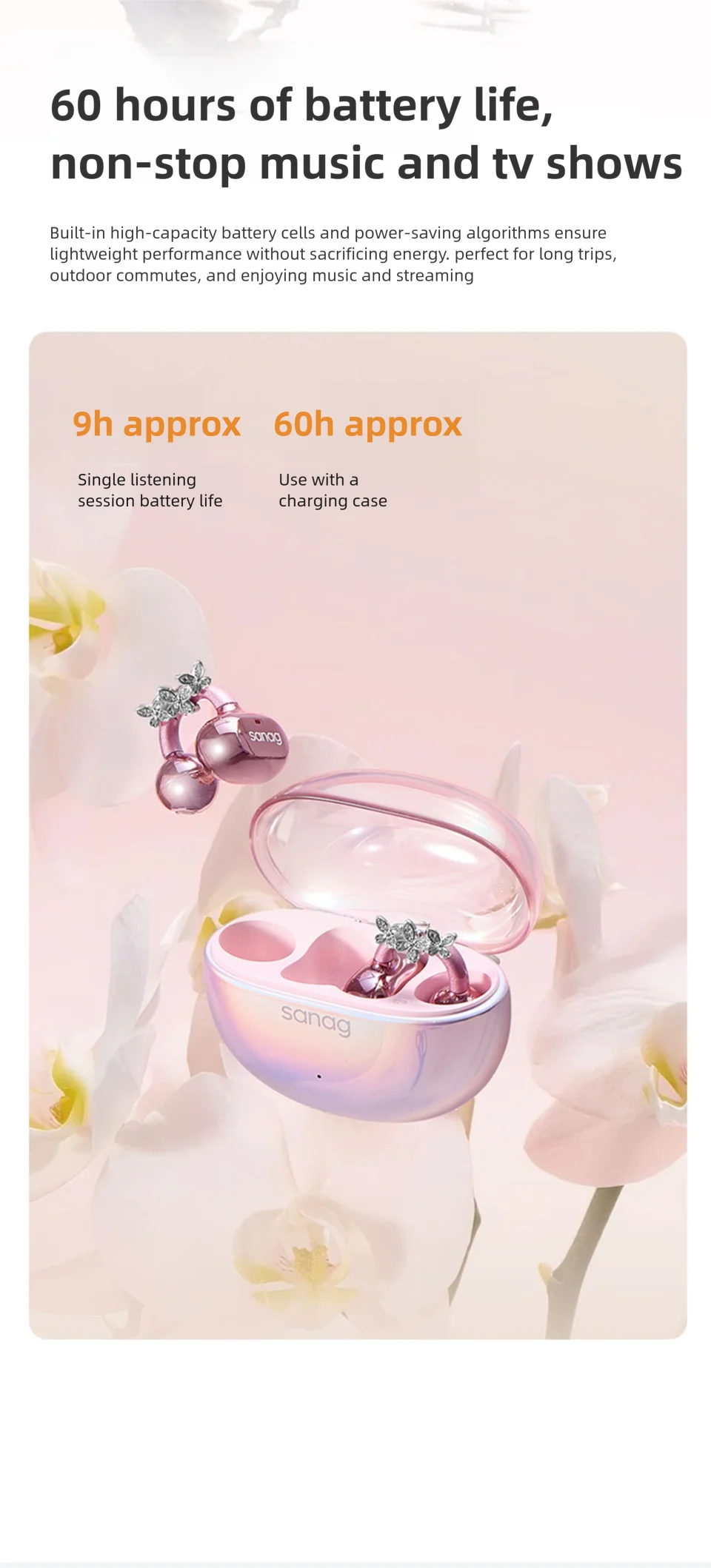 6. 9-hour single-charge music playback, extending to 60 hours with charging case