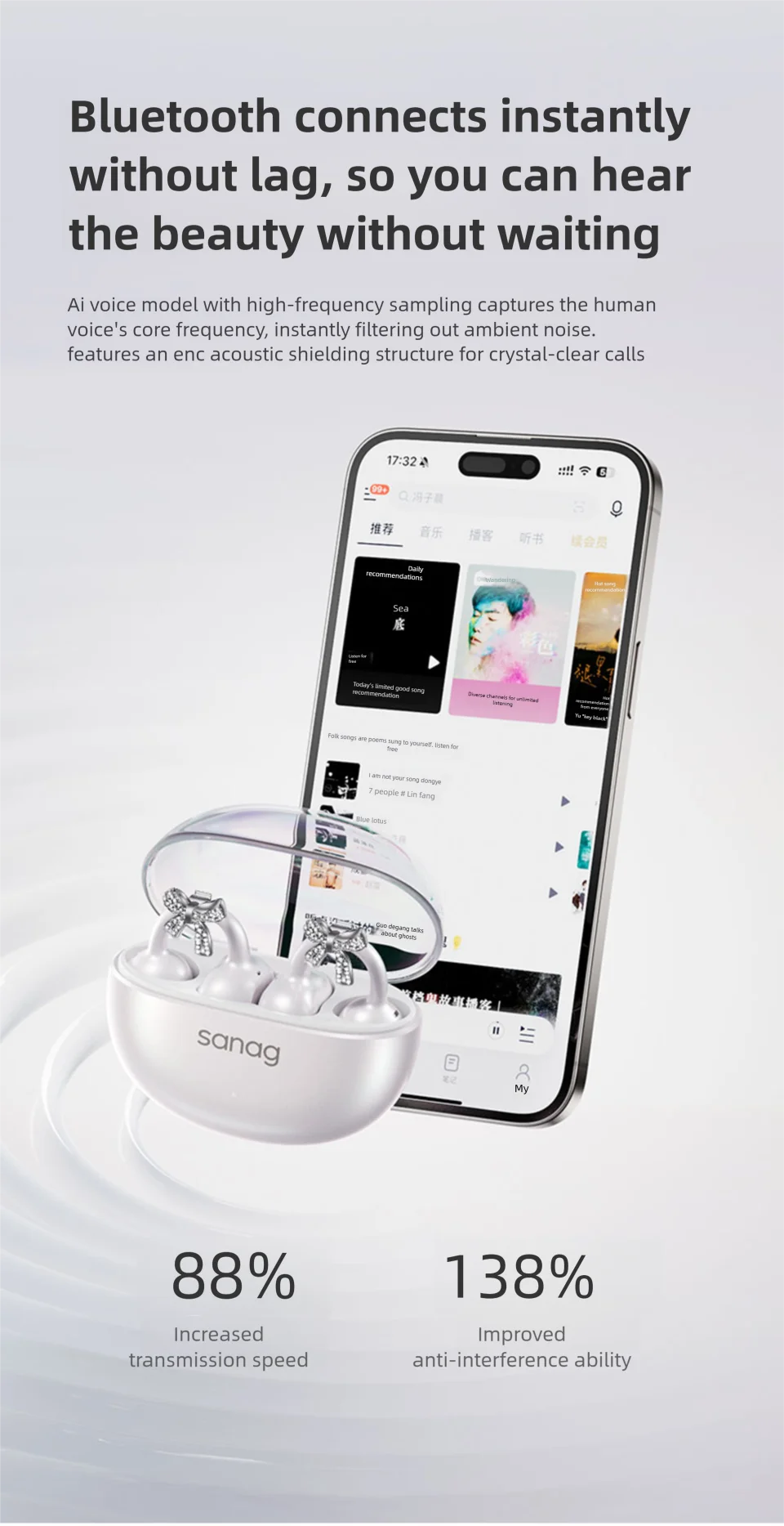 Features a high-capacity battery and power-saving algorithm. Compact and lightweight, perfect for long journeys, outdoor commutes, or binge-watching without battery worries. Paired with Bluetooth 6.0 for rapid connection, enhanced transmission speed, and superior interference resistance.